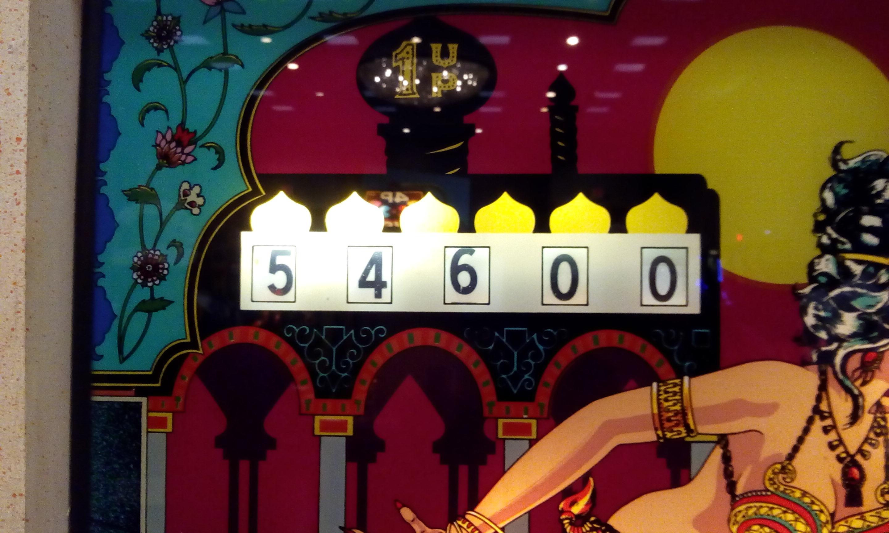 Finally, the QBert’s Qubes score, the video game highlight of the night, is my best on an actual arcade machine. Historically, I have not considered QBert’s Qubes a game I am particularly strong at. I only ever got to play it once or twice near the time of its release “back in the day” (scoring, I think, around 40,000 or so), but I have played it on MAME since then and grown quite a fond appreciation for it. Assuming those are marathon settings, that score would have been good for fourth on the Twin Galaxies board for Q*Bert’s Qubes, however first place on that board is a staggering 10.1M+ by Donald Hayes back in 2007. More on this later.