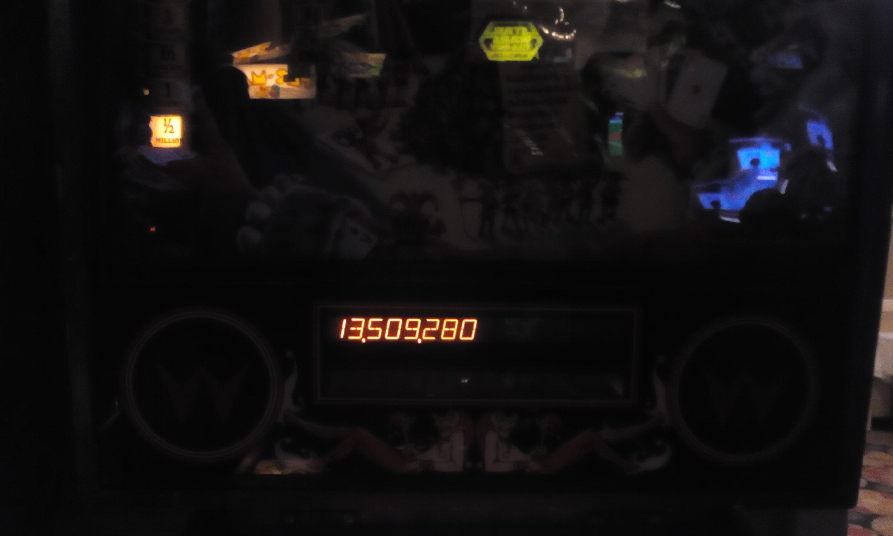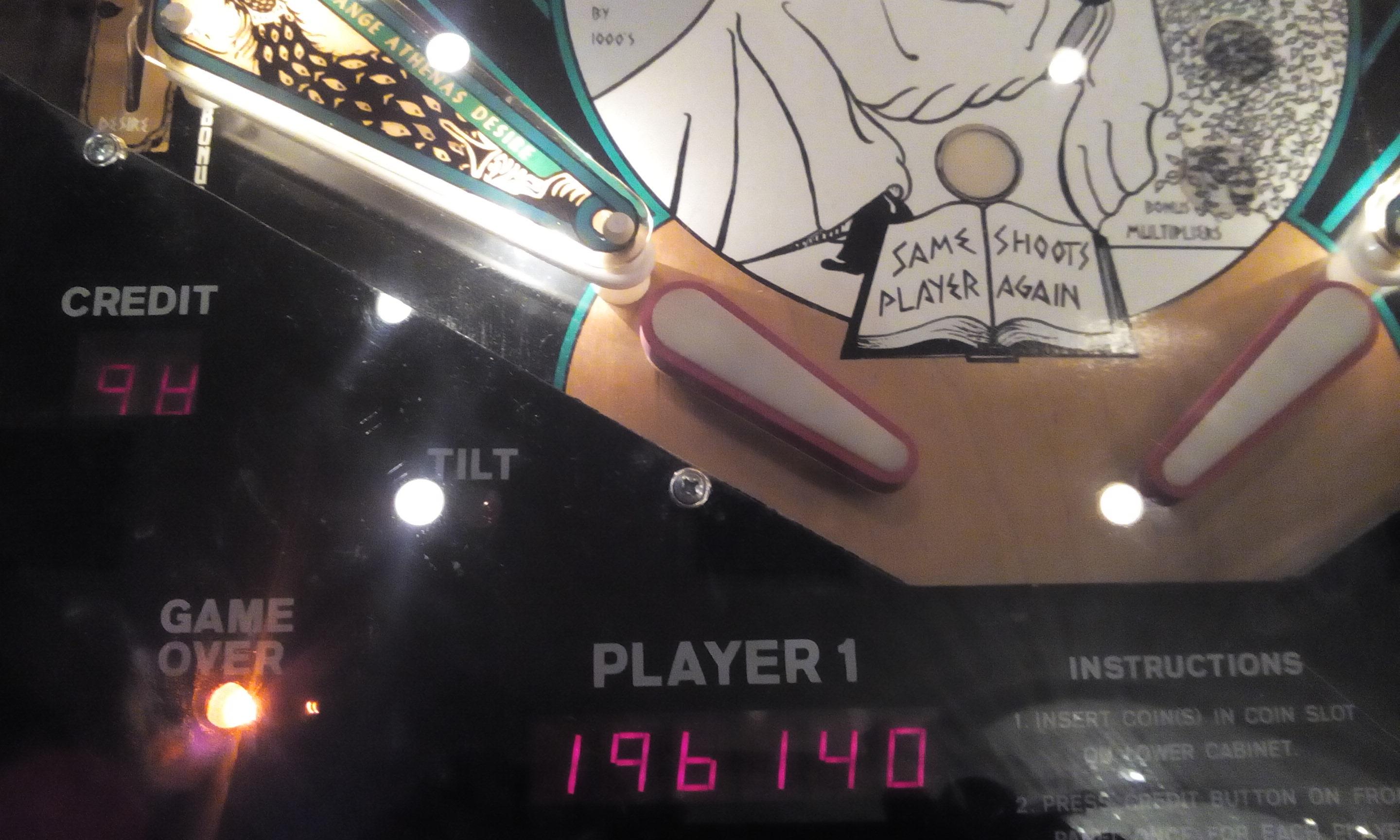 The scores on Blue Chip I put up were pretty good, but the bigger story on that game is that I am now getting to the point where I can consistently make all 8 targets, though getting special afterwards is another story. This is quite noteworthy given the left flipper doesn’t go quite full stroke on this particular table; it’s good enough to make most of the shots except the right saucer, but it is rather difficult to cradle a ball on the left flipper. The right spinner is also not working as of at least the tournament, probably sooner. (Not that it’s particularly easy to really rip the right spinner given the left flipper, so in part that’s just as well…)