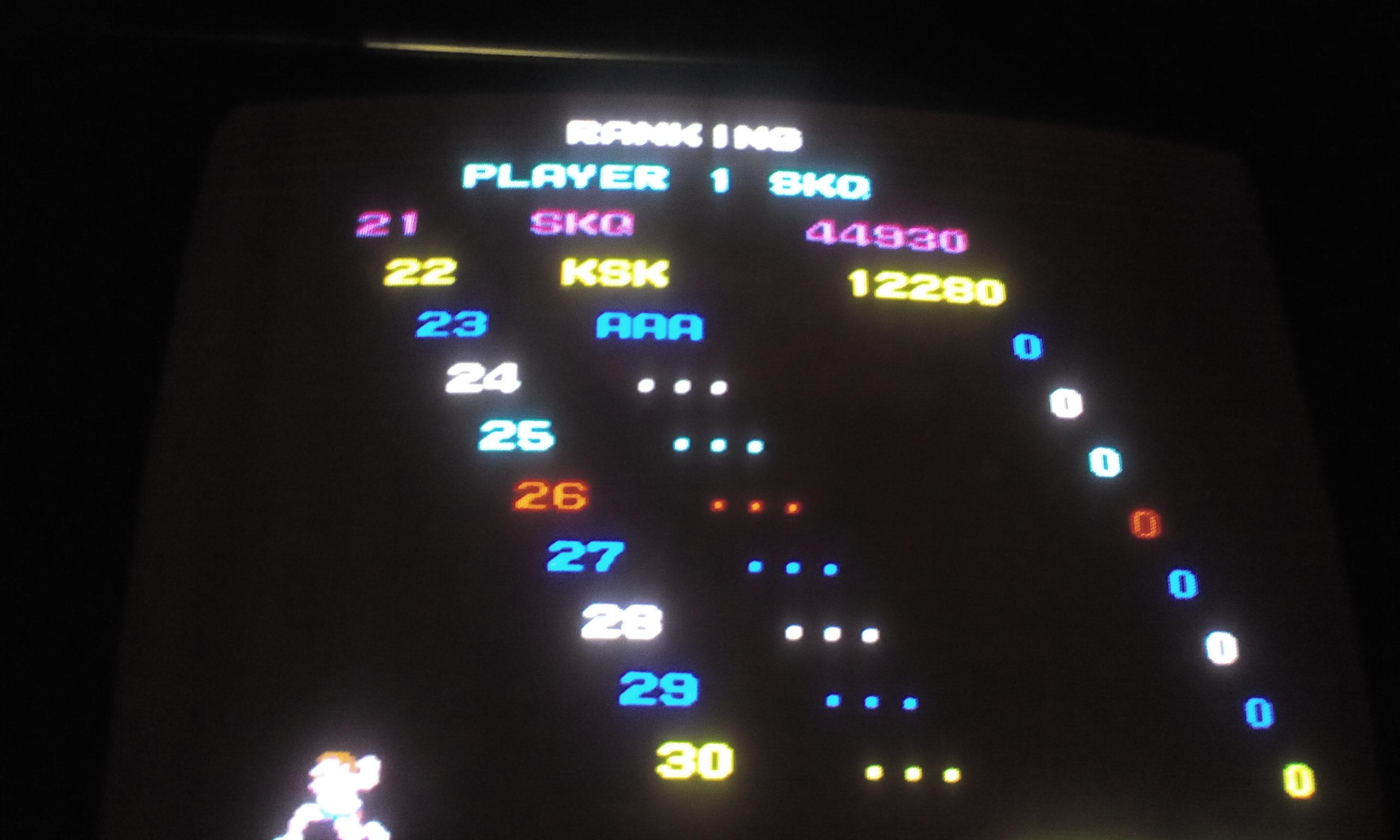 The Hyper Sports score represents the first time I have made it all the way to the pole vault stage on an actual arcade machine. In case you have forgotten which game this was, it was the follow-up to Track & Field and featured swimming, skeet shooting, long horse, archery, triple jump, weight lifting, and pole vault. Unlike Track & Field where the hammer throw was usually the game-ending event due to its difficulty, the only truly difficult event is the pole vault. (It is much harder than Track & Field’s high jump, for example; the high jump allows one to change one’s trajectory in mid-jump while the pole vault does not.)