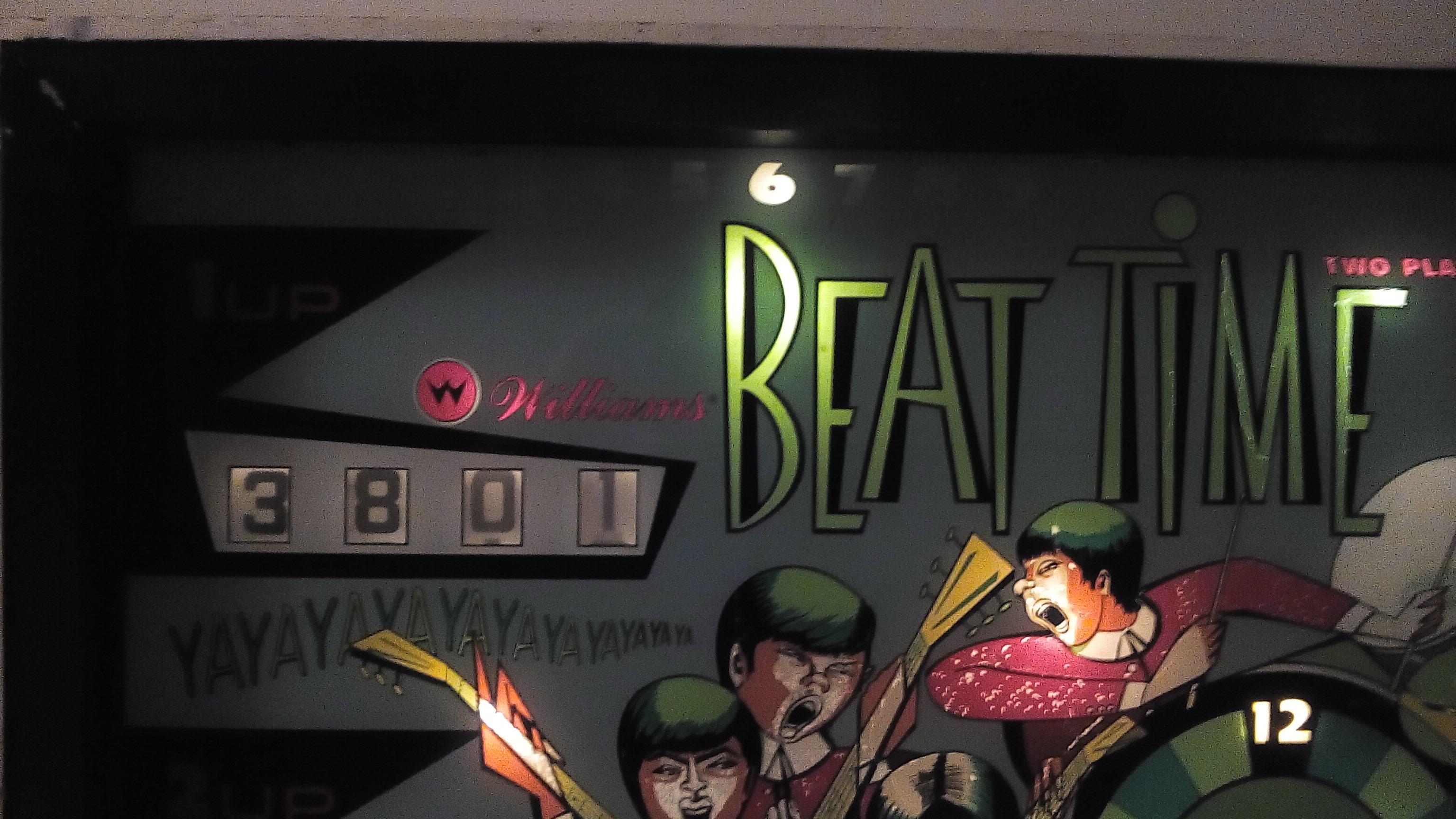 As a parallel, I eventually rolled the score counter on Liberty Bell when we had that one available. Realistically, I didn’t expect to ever do that, having once posted a few scores in the 700K-899K range and then finally a 900K+ score. The stategy on Liberty Bell was not that dissimilar; rip lit spinners enough times (which is, by the way, much easier to do than on a game like Blue Chip), try to keep making drop targets, and make sure to have at least a couple of doubled 100K bonuses to help out. Beat Time has no spinners, but having the bumpers and bumper area targets lit increases the scoring from 1 and 10 respectively, to 10 and 100 respectively, and is usually key to getting a good score. Yes, the 3-6-9-12 lanes are key to both this and the extra ball, but in at least one game on this night, I was not able to convert a lit extra ball. That was quite painful, too…