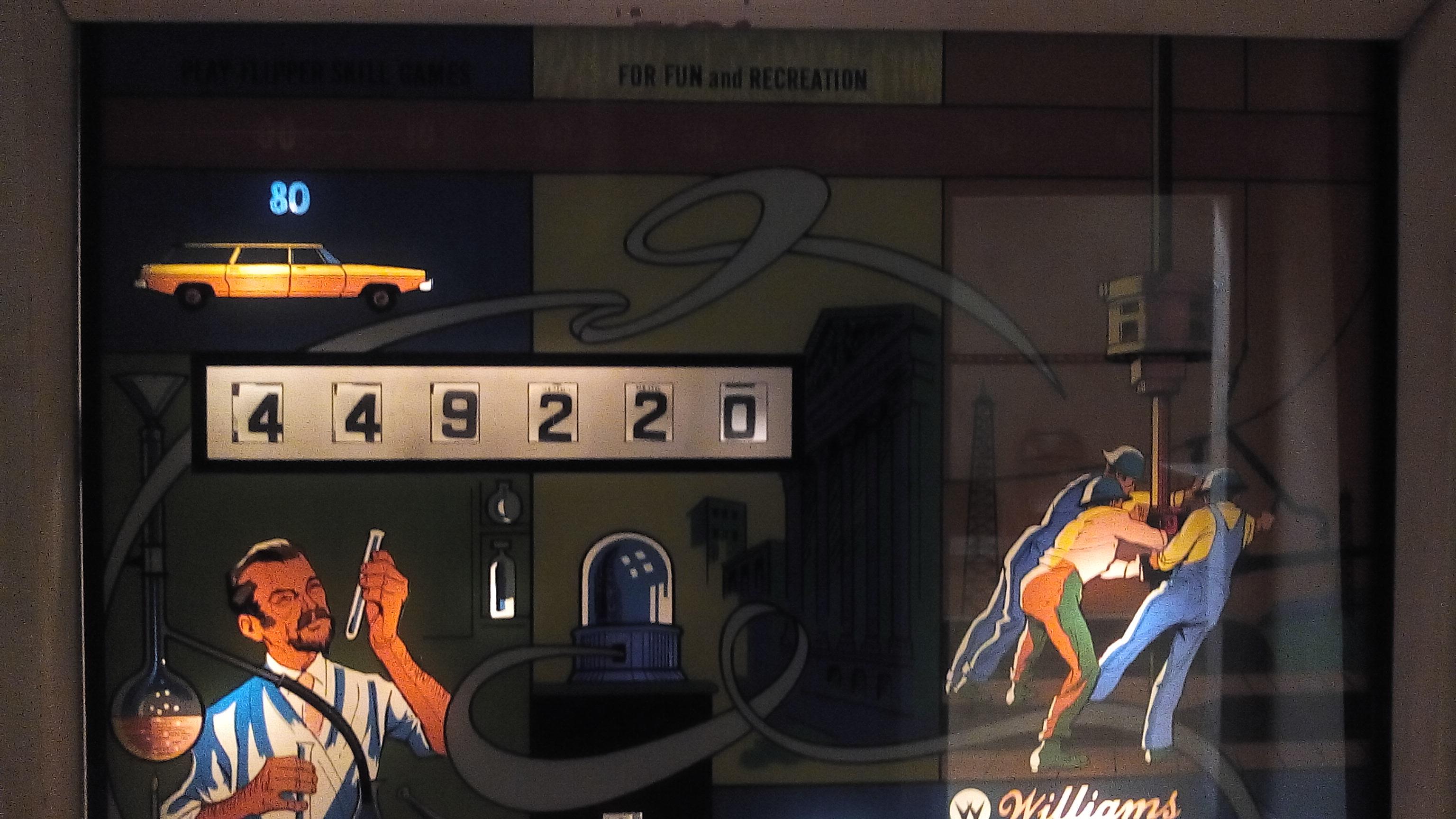 The only other particularly noteworthy score is the Blue Chip score. As a single player game, the strategy is a lot different than it would be on a multi-player game. (In the electromechanical (EM) era, only single player games carried forward game features such as lit targets, made drop targets, etc. from ball to ball. The move to solid state (SS) or “computer” technology made this difference irrelevant; only one single-player SS game was made to my knowledge, before what could be done with the technology was fully realized by manufacturers.) Anyway, the main goal of Blue Chip is to light the numbered targets 1 through 8 to light special on the right eject hole and outlanes (though it can be set such that only 1 through 6 are required to light an outlane special). Other numbers light other features, such as 2 lighting the left spinner, 5 lighting the right spinner, etc. “Rip the lit spinner” will get you quite a few points on this game, though it’s far from the only good strategy; I would prefer to build up bonus and then make a lit “double bonus” lane.
