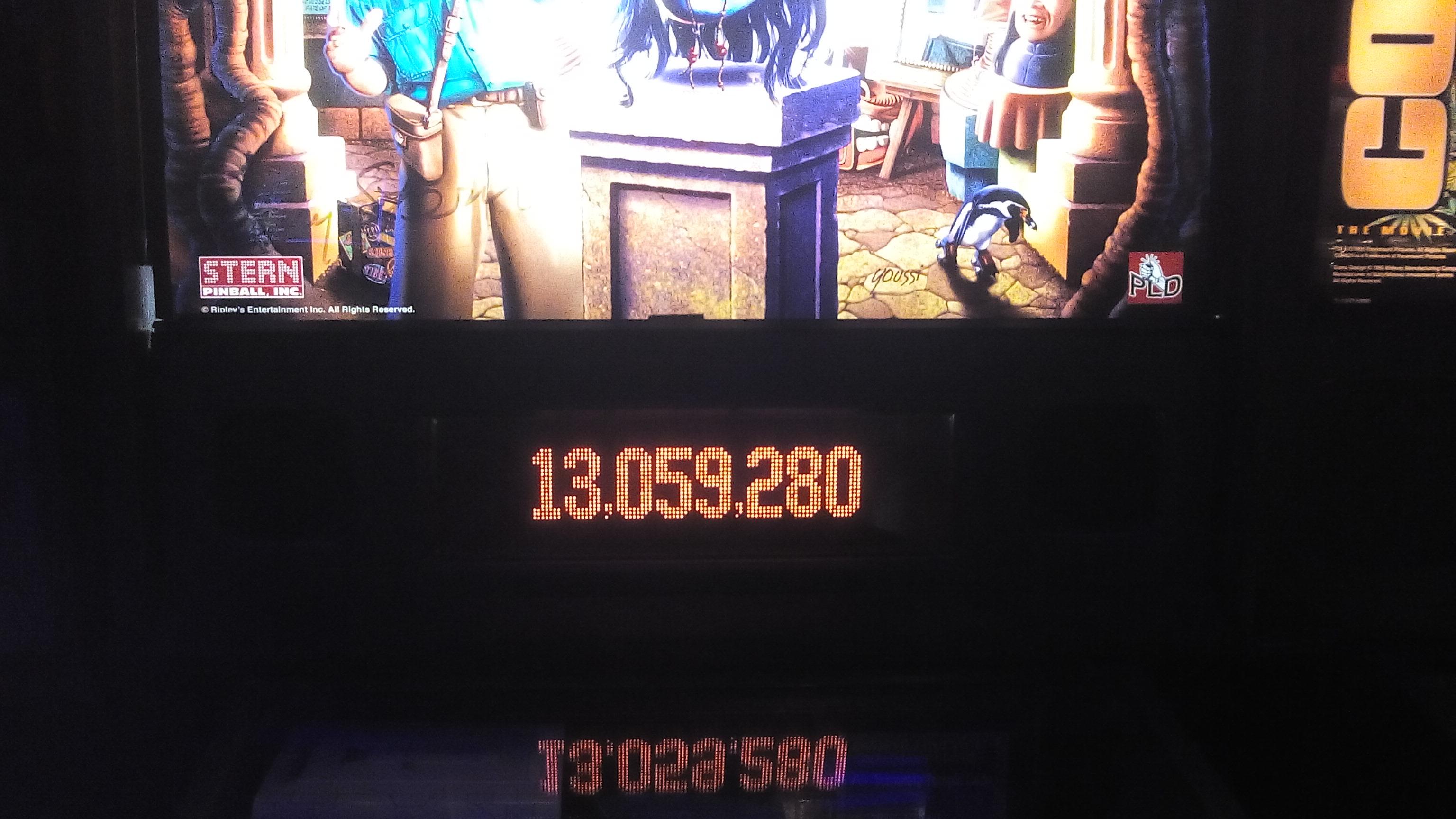 - 1,459,320 on Space Shuttle (first player of a four-player game someone else had abandoned early on, I forget the player 1 score when I started but the majority of the points scored are mine over balls 2 and 3)
