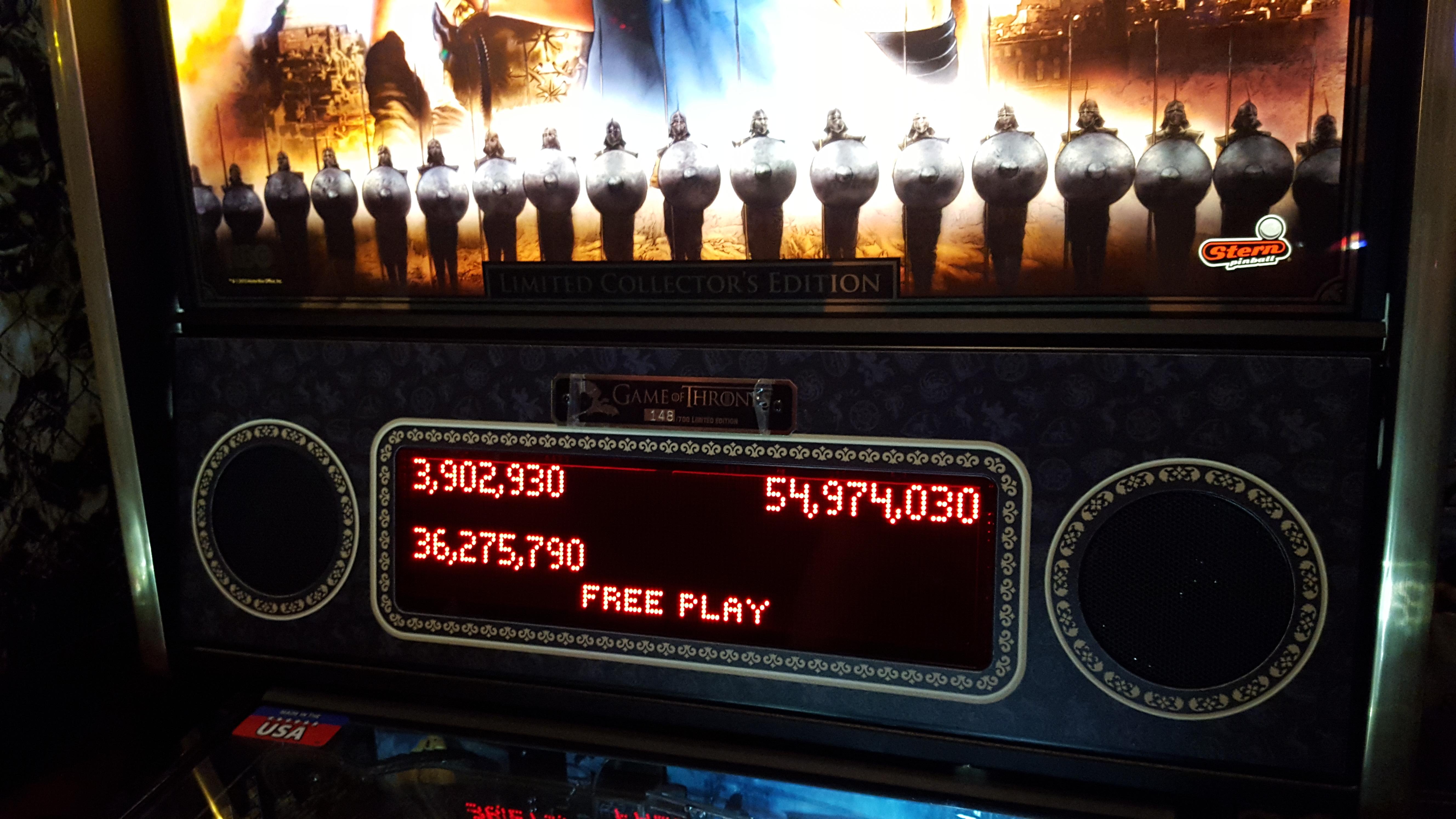 Next up would be Game of Thrones. Oh, and did I mention this was the game on video for the week? Well, as you will see when you watch, it’s a performance I’d rather forget: all of 2,303,380. The malfunctioning kicker really didn’t help. Given I’ve put up much, much higher scores on this game, this was a huge disappointment. Obviously, this was yet another fourth place finish, putting me at 5 standings points on the night after four games. I would need a first place finish on The Hobbit to still be able to drop the 9 points from Week 4 (which is bad enough already).