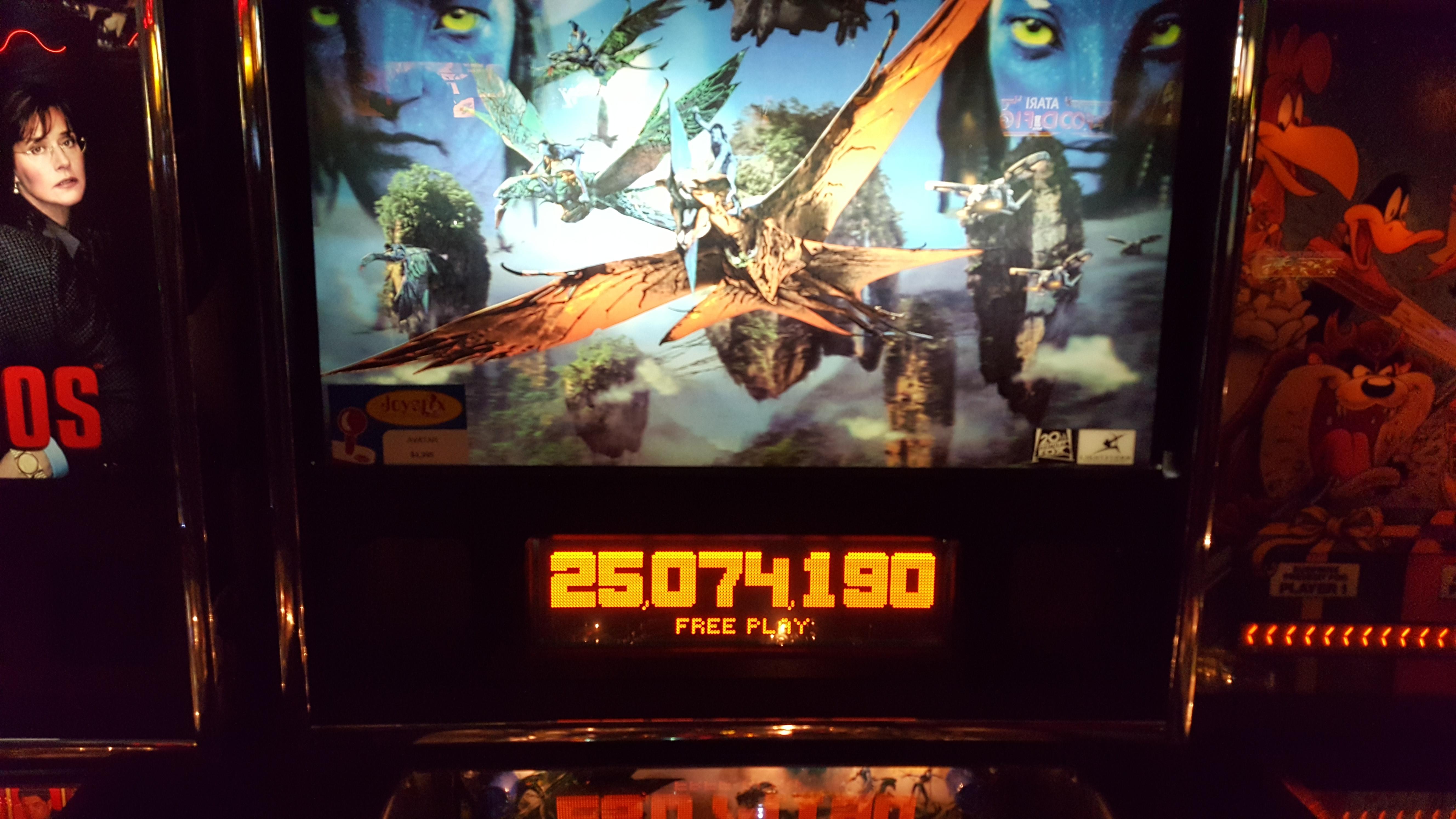 I did get to play quite a few games that I had not played in years. Most notably, two videogame titles, Cliff Hanger (a Stern/Seeburg laserdisc title circa 1983 that I never got to play when it was new) and Time Traveler (the Sega hologram game from 1989 which is now somewhat rare). I also got in my first games of Whoa Nellie! Big Juicy Melons (yes that is actually the title of a pinball game), Terminator 3, and Avatar. I also got to play, for the first time in a very long time, Bugs Bunny’s Birthday Ball. I know that last title is a game people love to hate, much like The Simpsons (the original 1990 Data East game, not The Simpsons Pinball Party which was made by Stern much more recently).