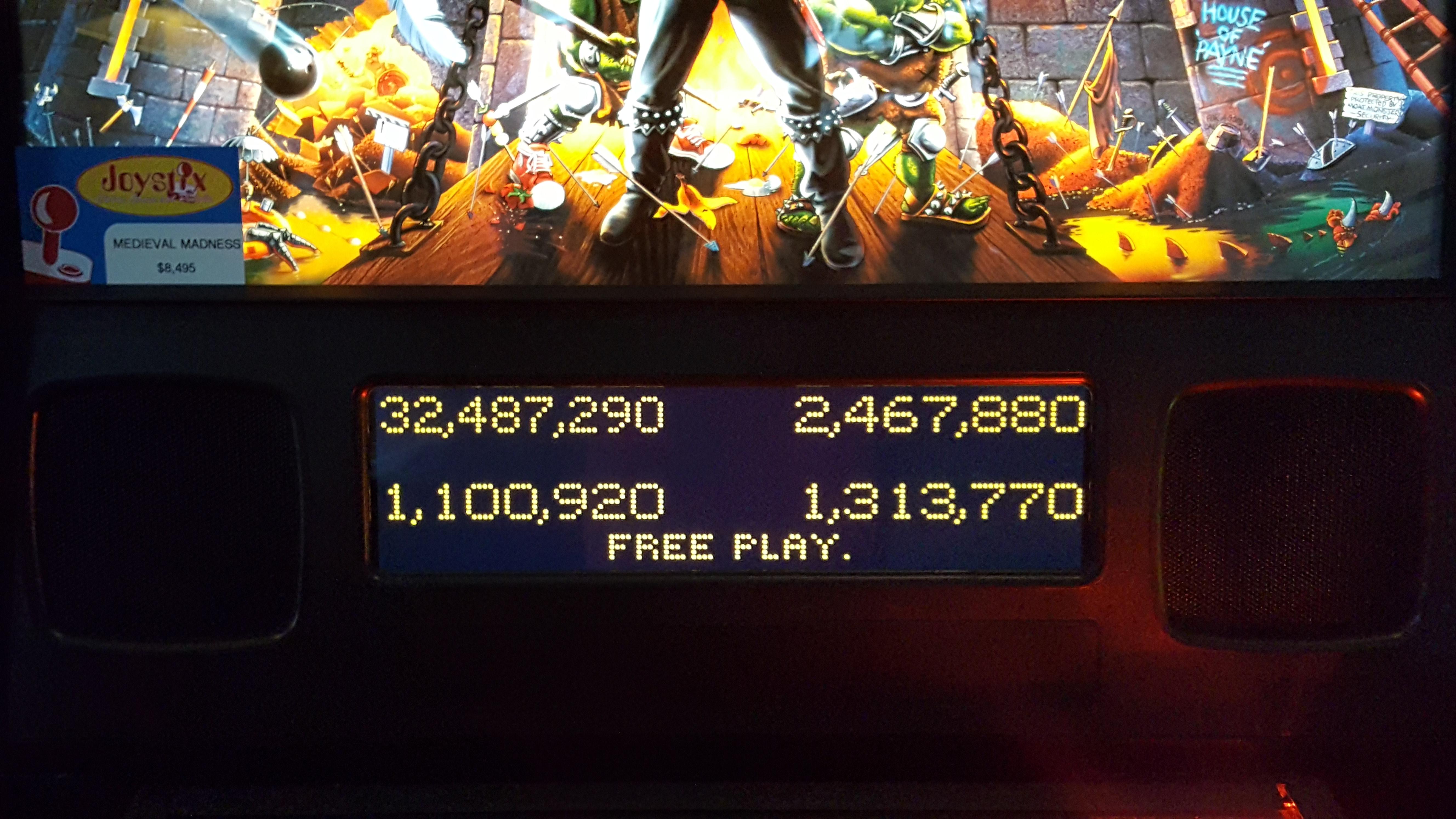 Again, we would begin with Medieval Madness. And in what is starting to become my usual for this game, I get off to a lousy start and never really get a lot going, signing off with a third-place 1.3M+ which barely edges out Jake’s 1.1M+. Not the start I wanted.