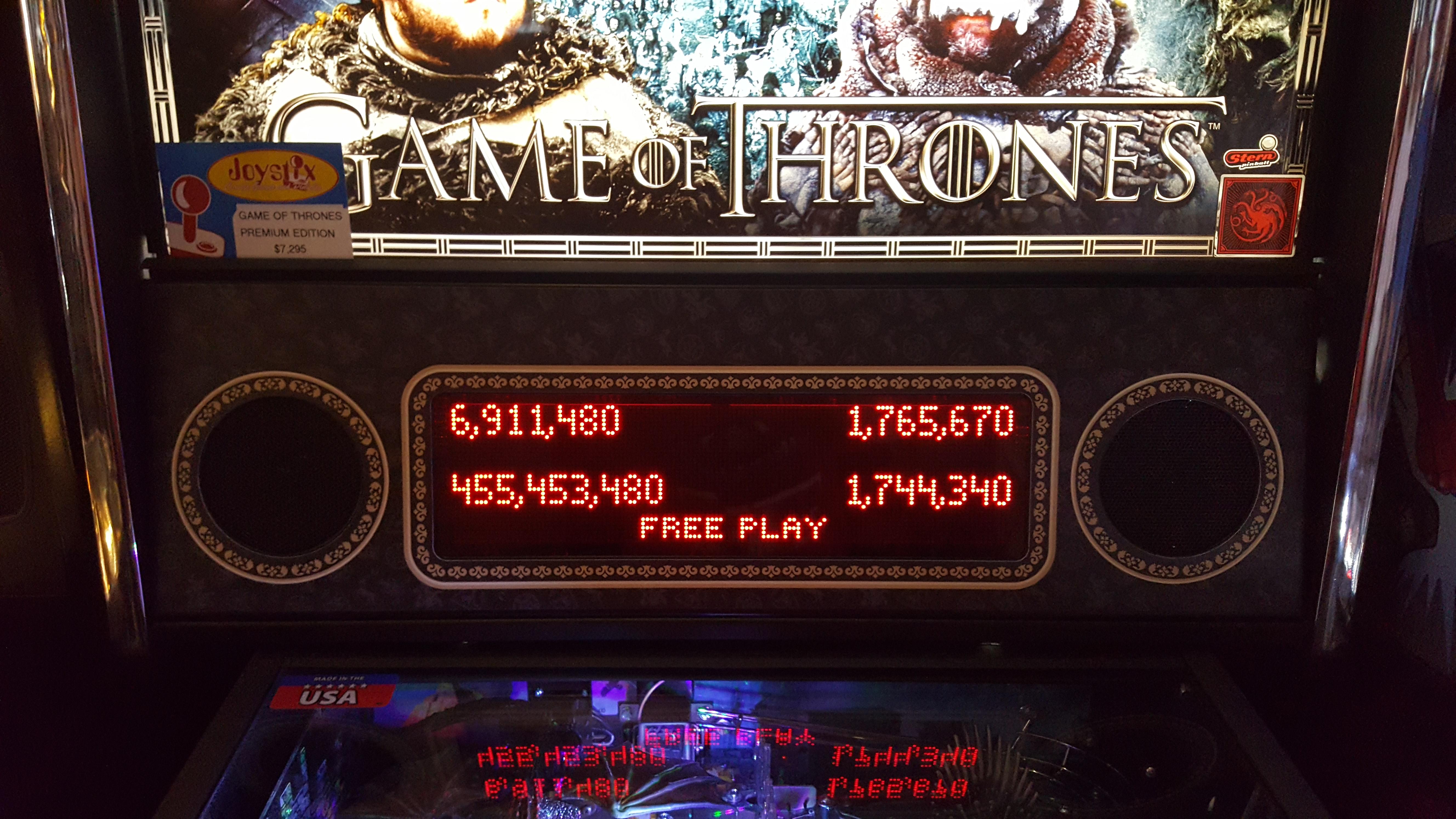 My disappointment would be short-lived, as the next game was on Game of Thrones. This is a game I knew I could put up a winning score on, the only question was whether or not I could. I was able to start Blackwater Multiball during ball 2, and I remembered my add-a-ball (I play House Martell where add-a-ball is the action button award). Somehow I was able to put up a solid 455M+, easily good enough for first place this time, with Brad holding down second with 6.91M+.
