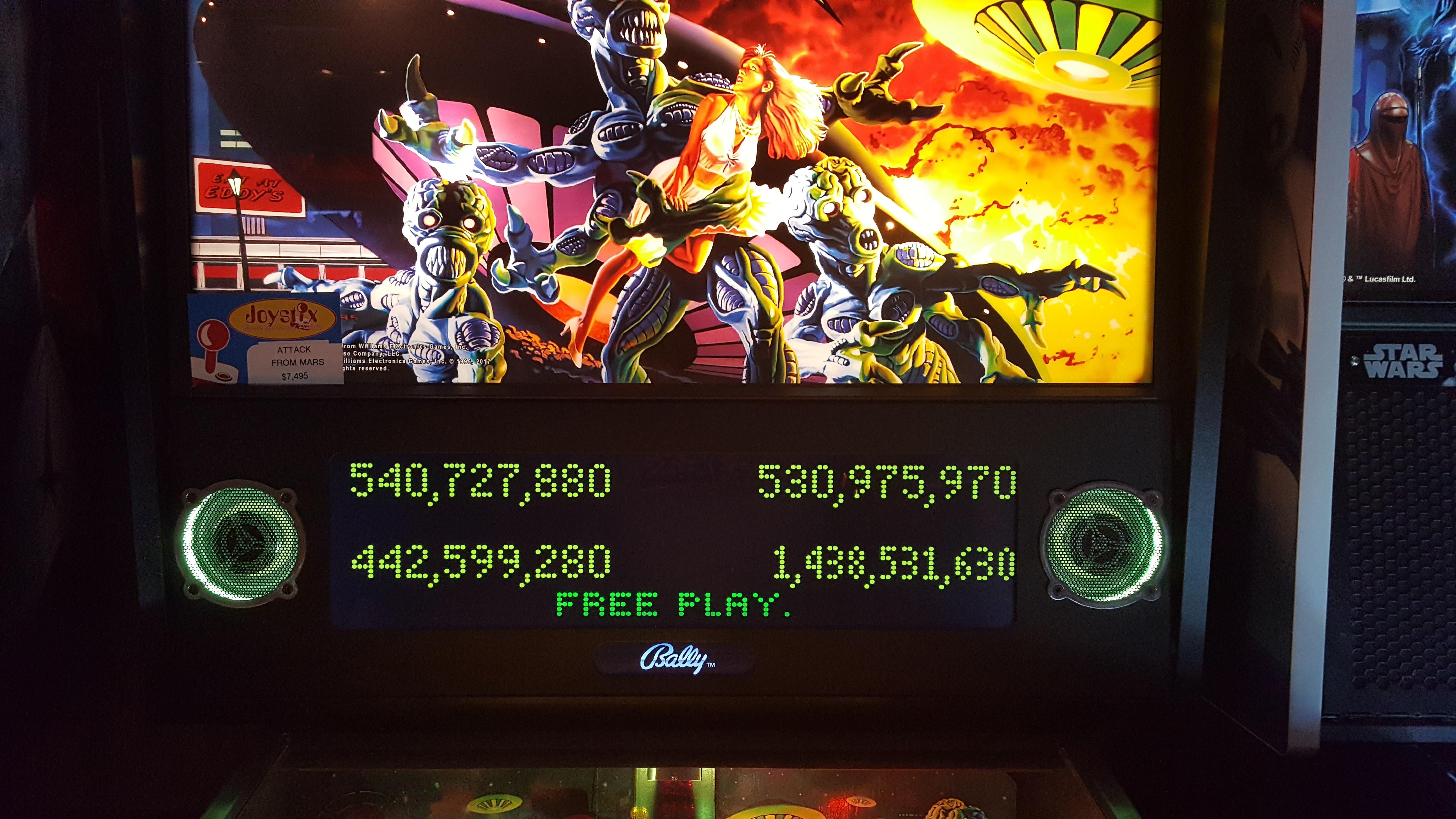 We would play our fourth game of the night on Attack from Mars. I kept this one close but would come up short after my third ball, signing off with 1.41B+ versus the 1.57B+ from Jeff. So I’m at 12 standings points going into the last game. Every point still counts, even if now I’m just defending my seed at the top of B division.