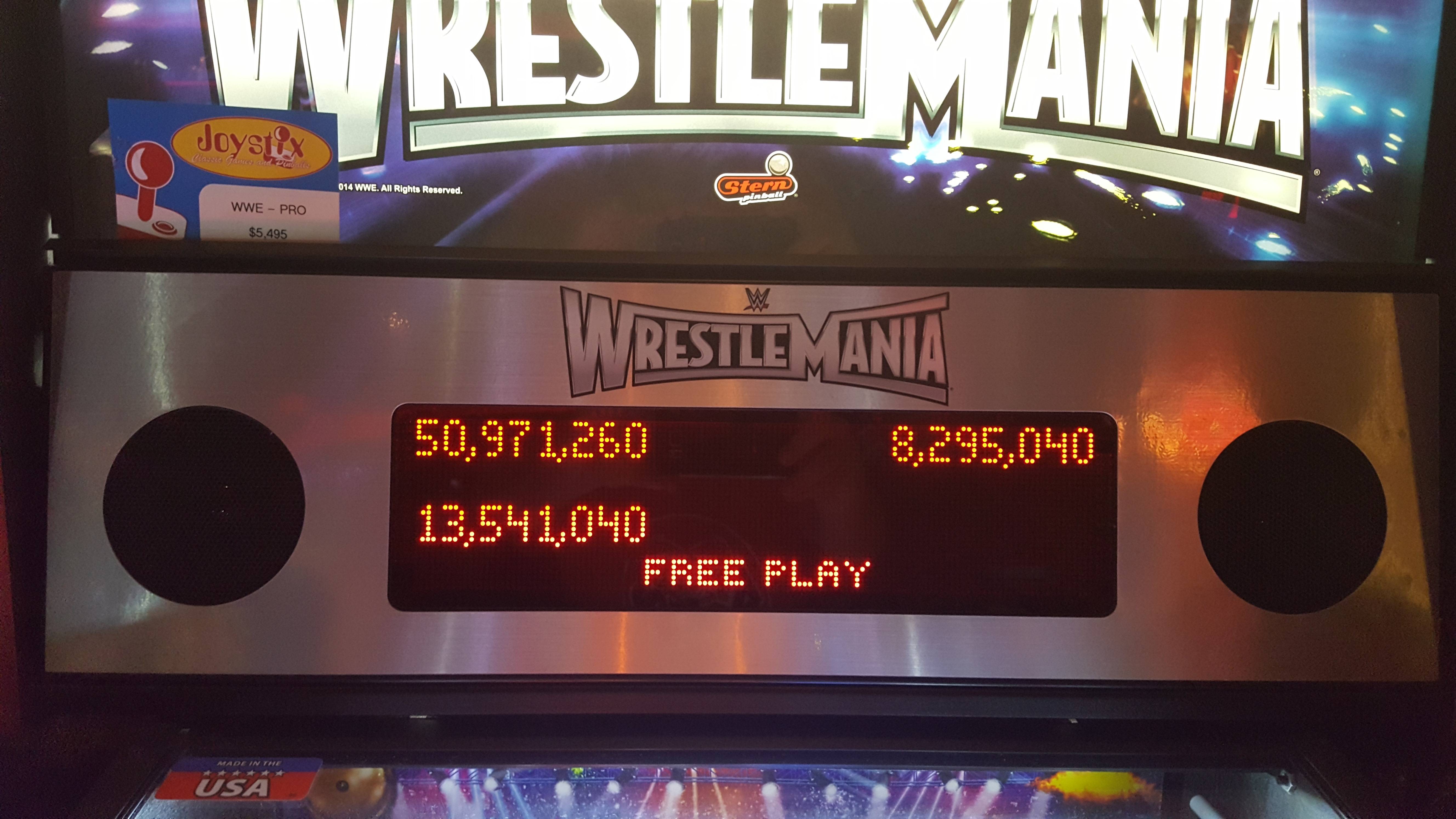 We would begin on Wrestlemania. I was able to keep up with Rob for the most part. After the second ball, I was behind by only around 1.65M, but he blew it open on the third ball, leaving me a nearly impossible gap to close. I needed to come up with around 40M points on ball 3, and needless to say, I didn’t get them. I would have to be content with a second place with 13.5M+ to Rob’s 50.9M+.