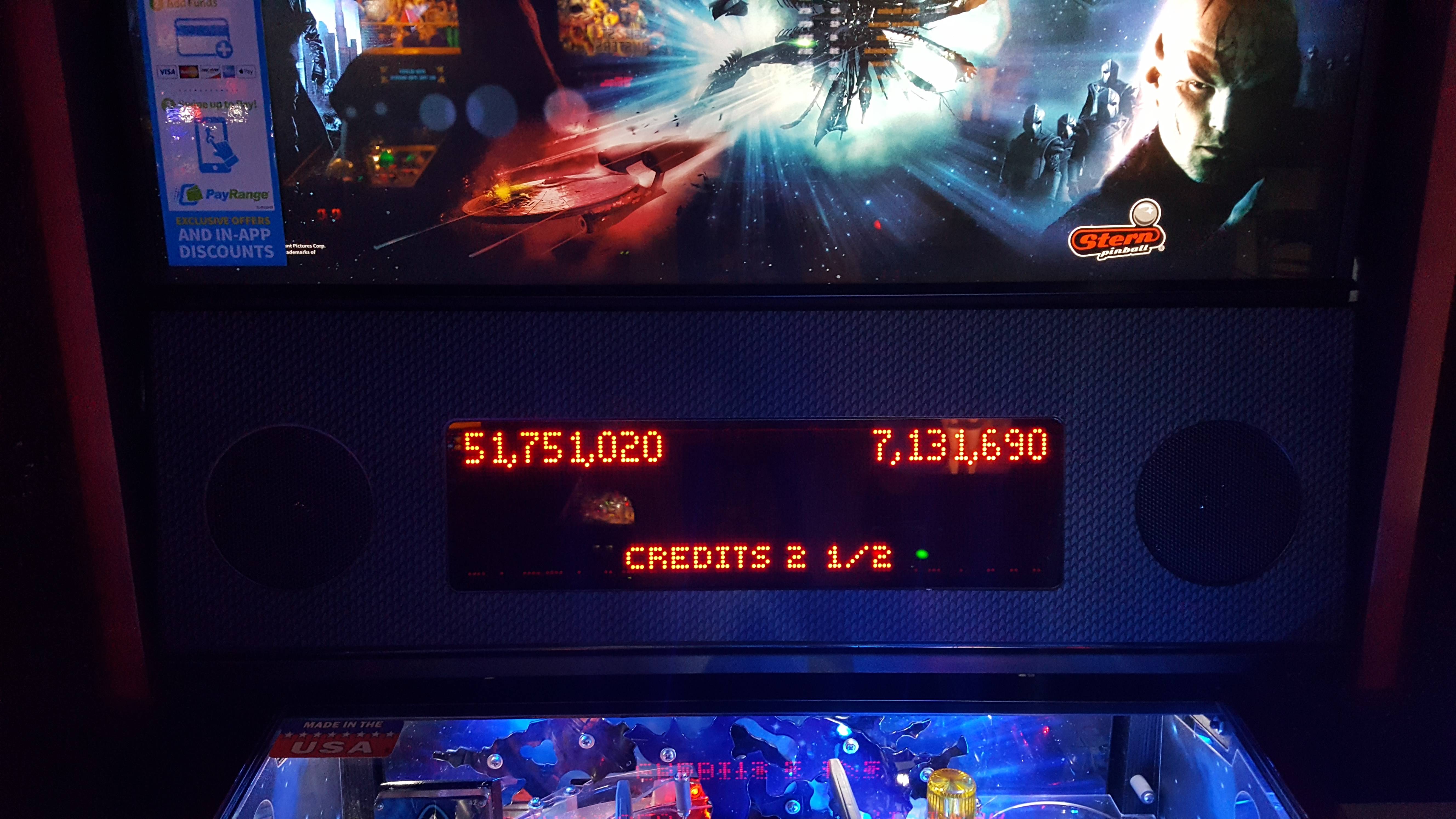 I did get to play one two-player game in the course of the night. Turns out Star Trek was her favorite game and before I asked her to join me in a two-player game, she played The Walking Dead and Theatre of Magic. Not surprisingly, I had a pretty good first ball (somewhere around 36M if I remember right, I didn’t keep records after each ball the way I did for the playoffs), so much so that she took to playing another game of The Walking Dead while waiting for me to finish. The final score of 51.7M+ was a bit short of my best on the night, but way more than enough to win over Ms. “Oops I So Didn’t Realize I Challenged A Pinball Wizard” and her 7.1M+ score.