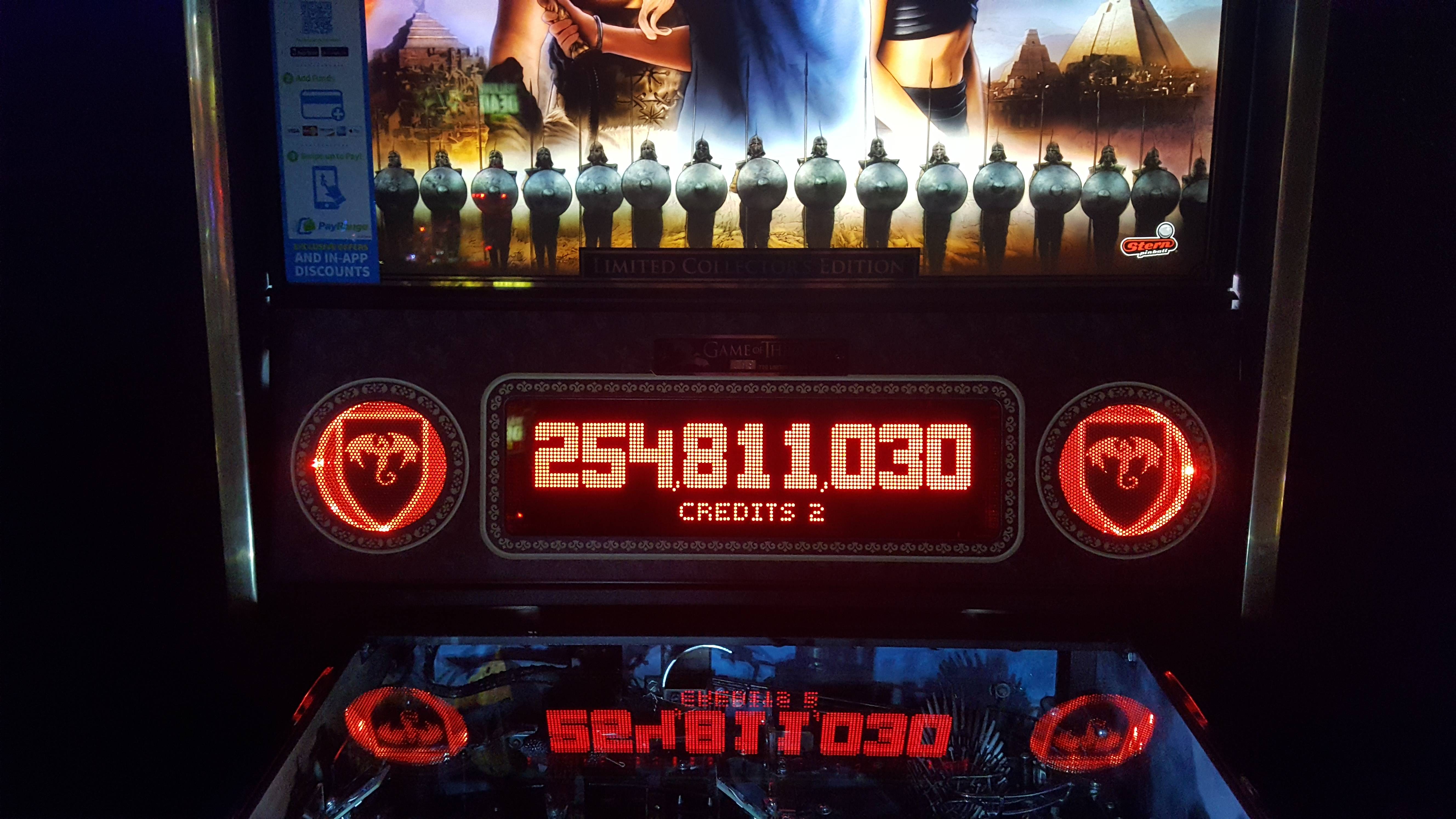 My best scores on the night were, in order: Star Trek, 55.4M+; Game of Thrones, 254.8M+; Attack from Mars, 4.290B+. Looking at league nights past, they measure up fairly nicely, though not of the caliber that triggers the initials entry mode, and nowhere near triggering a wizard mode at any point. (Though to be fair about it, I was not constrained by only being able to play one extra ball were I to win multiple extra balls in one game. I might have had two extra balls in one of the games of Attack from Mars, though if I did, the additional extra ball didn’t affect the score that much.)