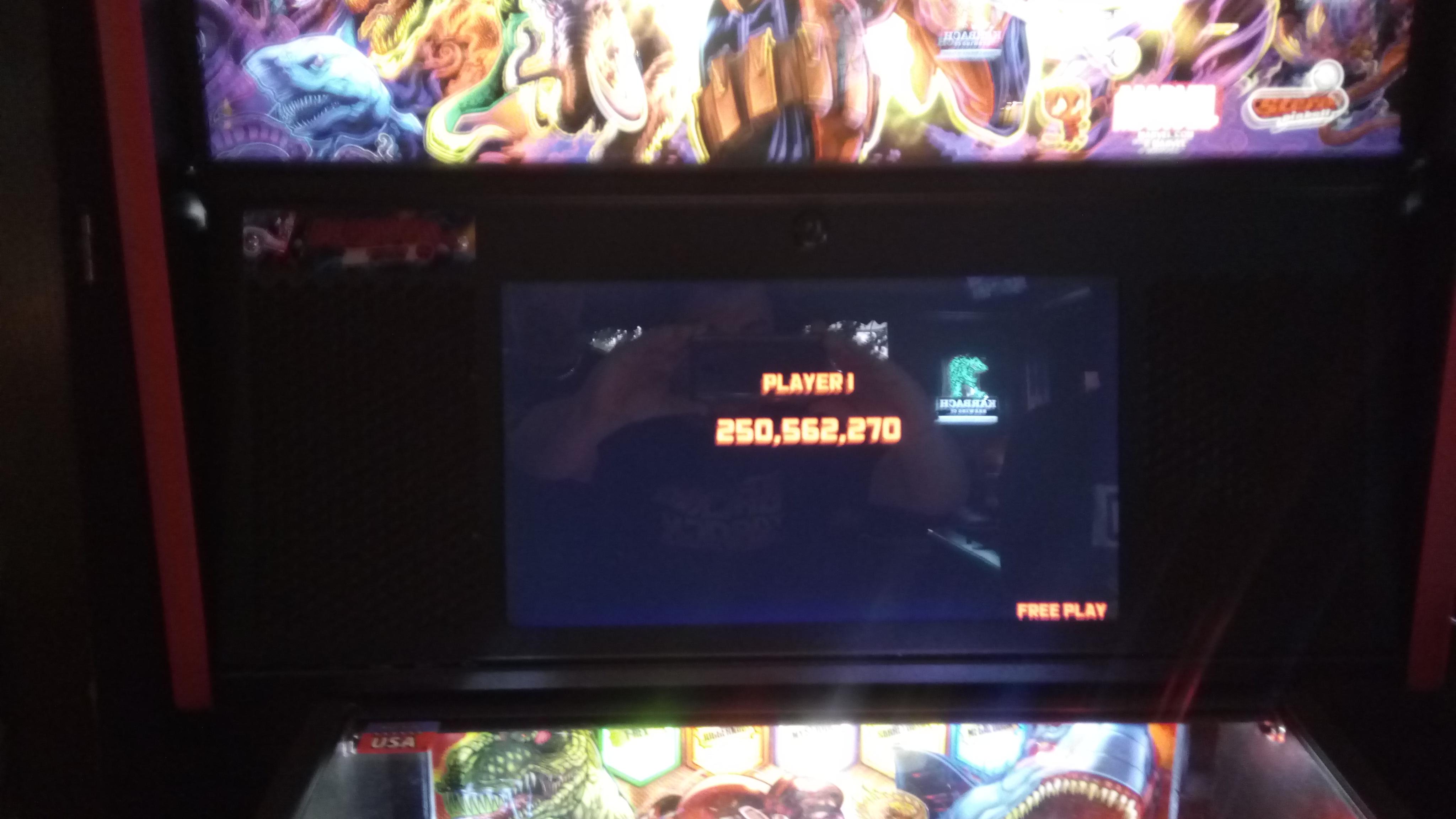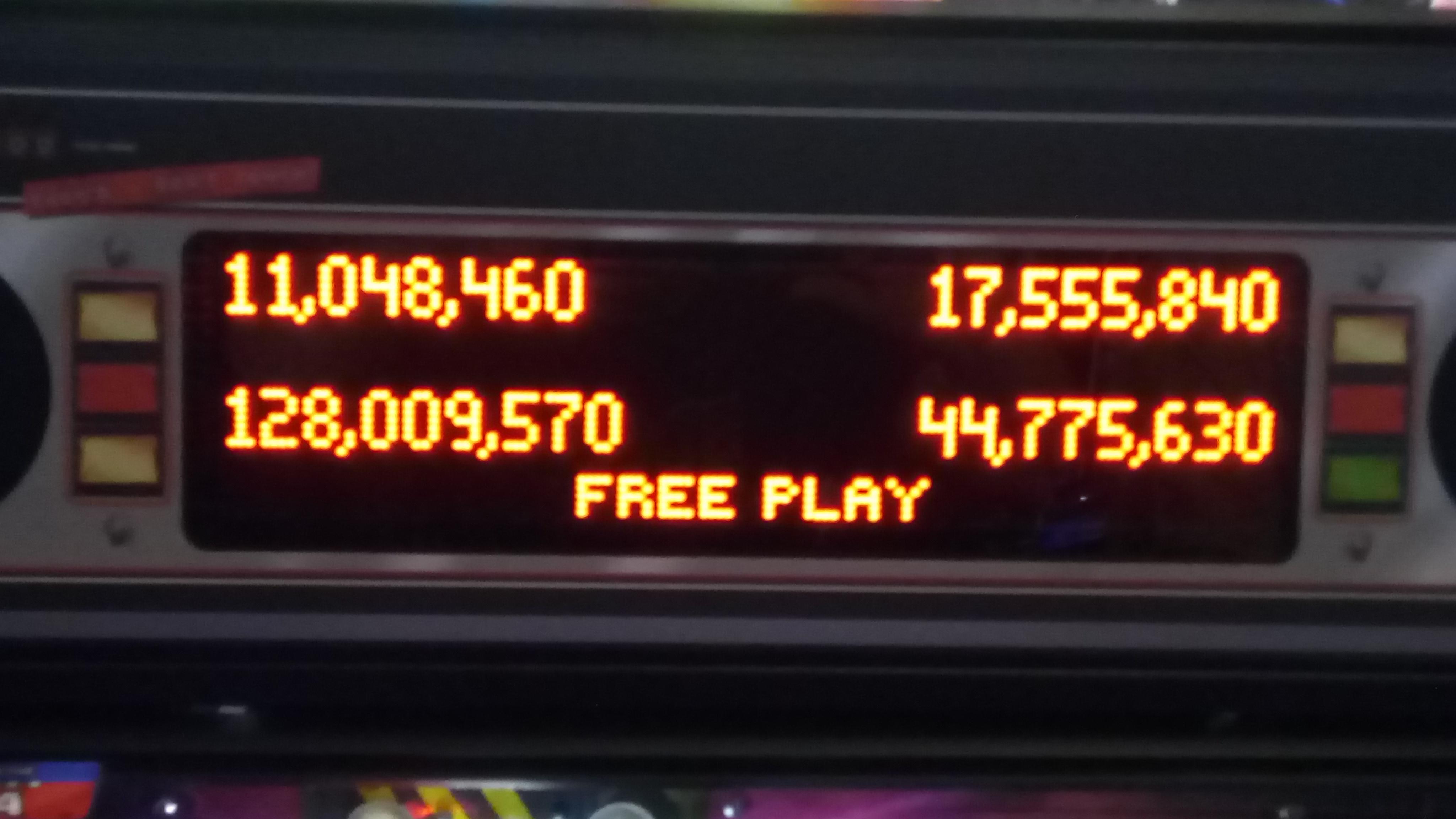 My first ball on Attack from Mars was a dud, with a puny 51.5M+ on a game where decent scores start at a billion. Not good. By the time it got back around to me for ball 2, I would be staring down a 1.37B+ from Elizabeth. A rather large margin, but not an insurmountable one. I proceeded to go to work. I would somehow manage to complete all the shots needed for Total Annihilation within the span of that one ball. Even though it was a relatively low scoring TA, I would see the lead with a 3.97B+ total, tacking on a few more points in a multiball on my third ball to sign off with 4.60B+, good for first place for 4 standings points. (I came within one shot of a second TA in one game, something I’ve never done on a real AFM machine that I can remember.)