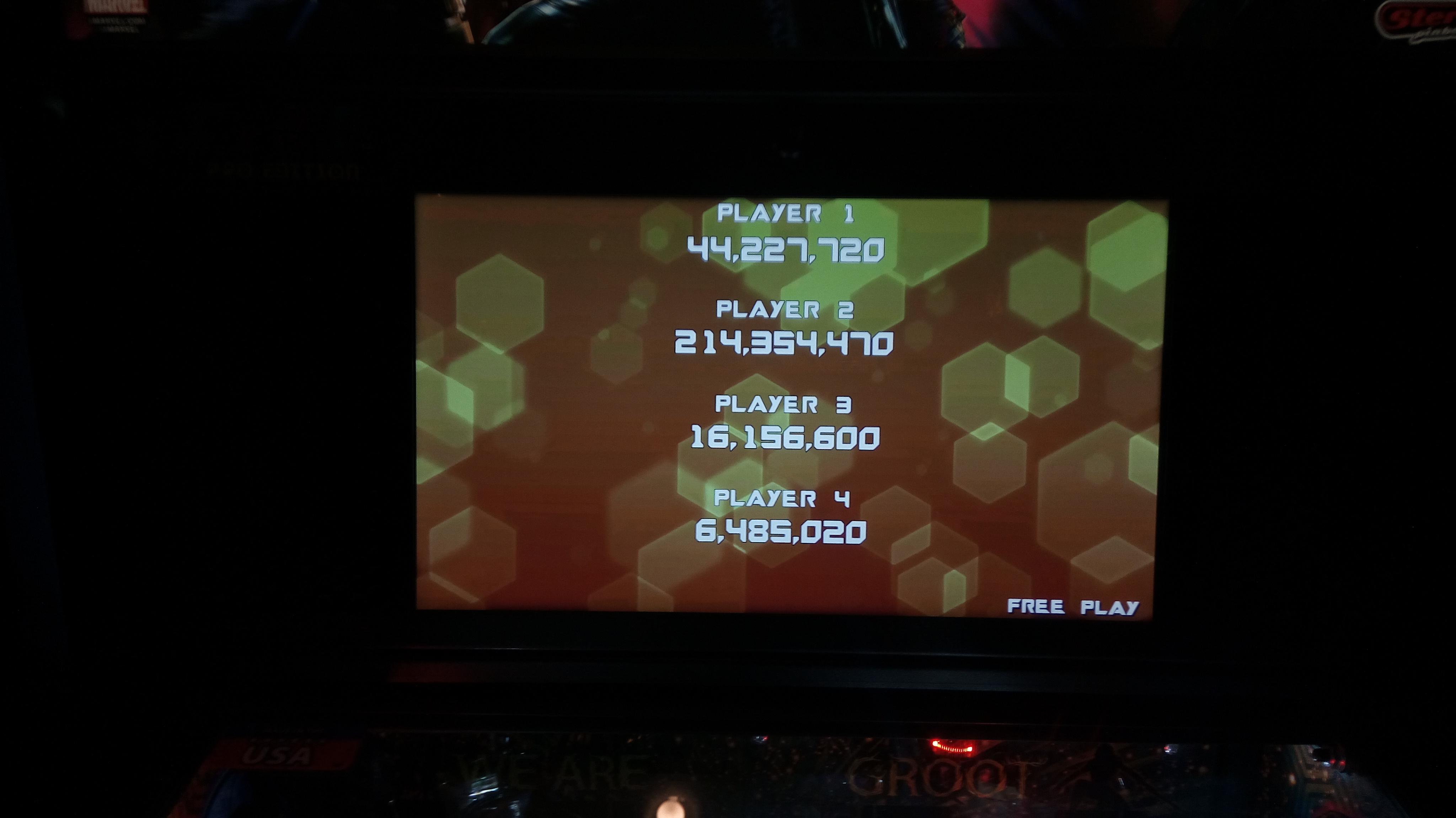Right on cue, I start Guardians of the Galaxy with a rather lousy 3.5M+ ball. Cory puts up a 34.8M+ and Fred puts up a 7.8M+. (Matt put up a score very close to mine, basically a tie at this point, not really worth worrying about.) My second ball wouldn’t be much better, bumping me to only 5.1M+, behind everyone else but a particularly distant 50.6M+ from Fred. But this is Guardians of the Galaxy, and based on past experience, if I can get Groot Multiball started, I’m still in it. If I remember right I have either two balls locked or the second lock lit.