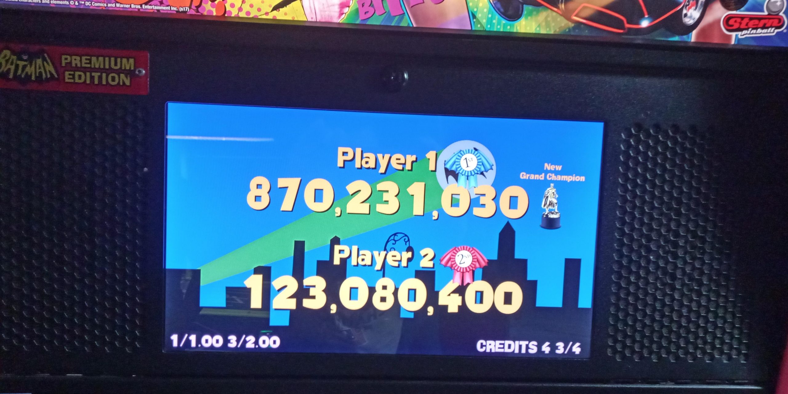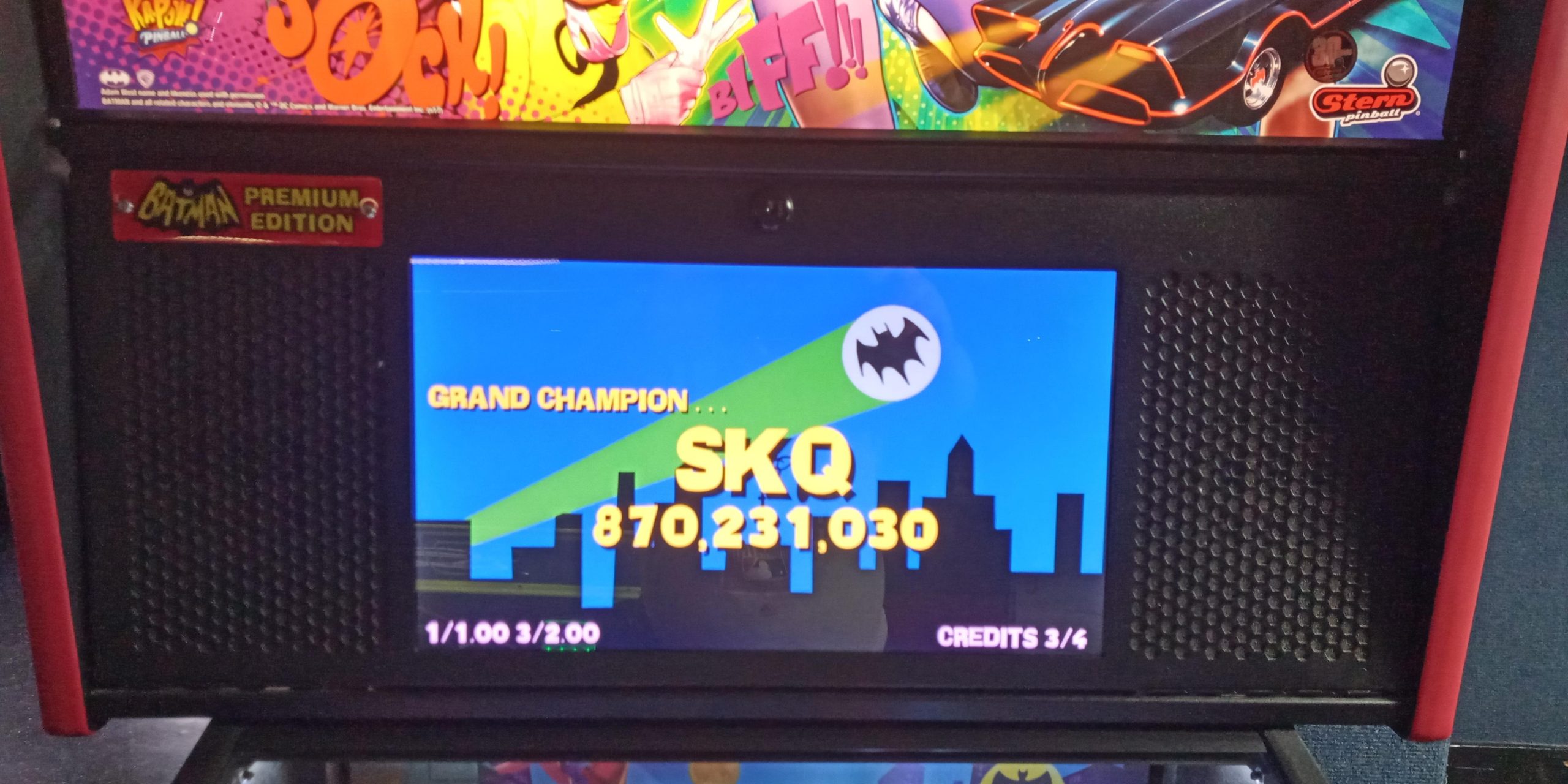 I would return a few days later to check out the rest of the games I didn’t get a chance to play the first time through. An unremarkable 12.7M+ on Deadpool and a modest 79.0M+ on Star Wars would begin the evening, but the real story is what I would do the second time through on Batman ’66: a personal record and grand champion score of 870.2M+ as well as a bonus champion of 329M+ (from an earlier game than the grand champion score).