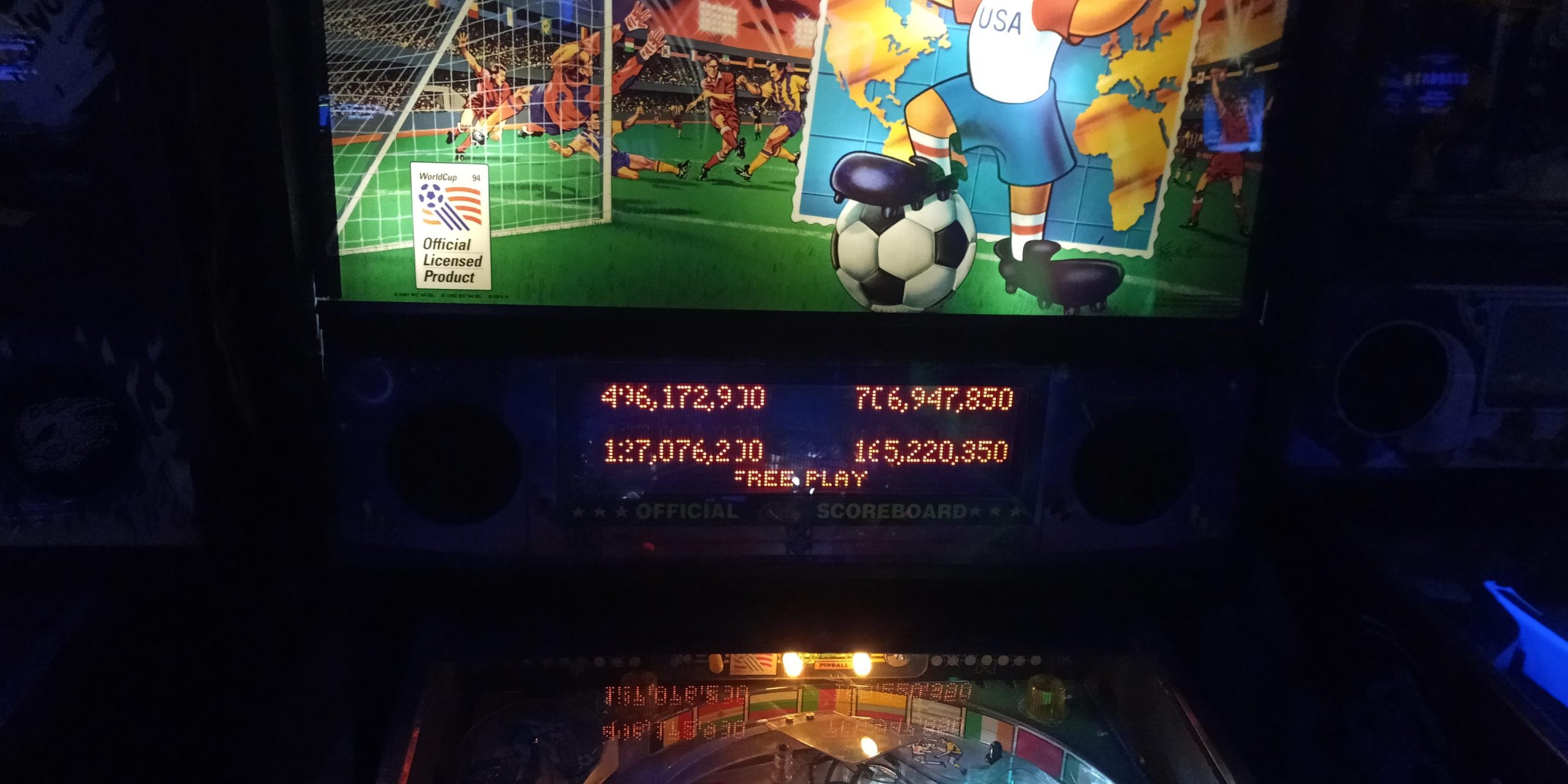 On to round 3, World Cup Soccer with Lee, Hunter, and Brandon (I would play first). I did start multiball during my second ball and put up a relatively decent score of 496.1M+, behind Lee’s 706.9M+. This was good enough to avoid a strike, especially satisfying since this is one of the games I don’t really like a whole lot.