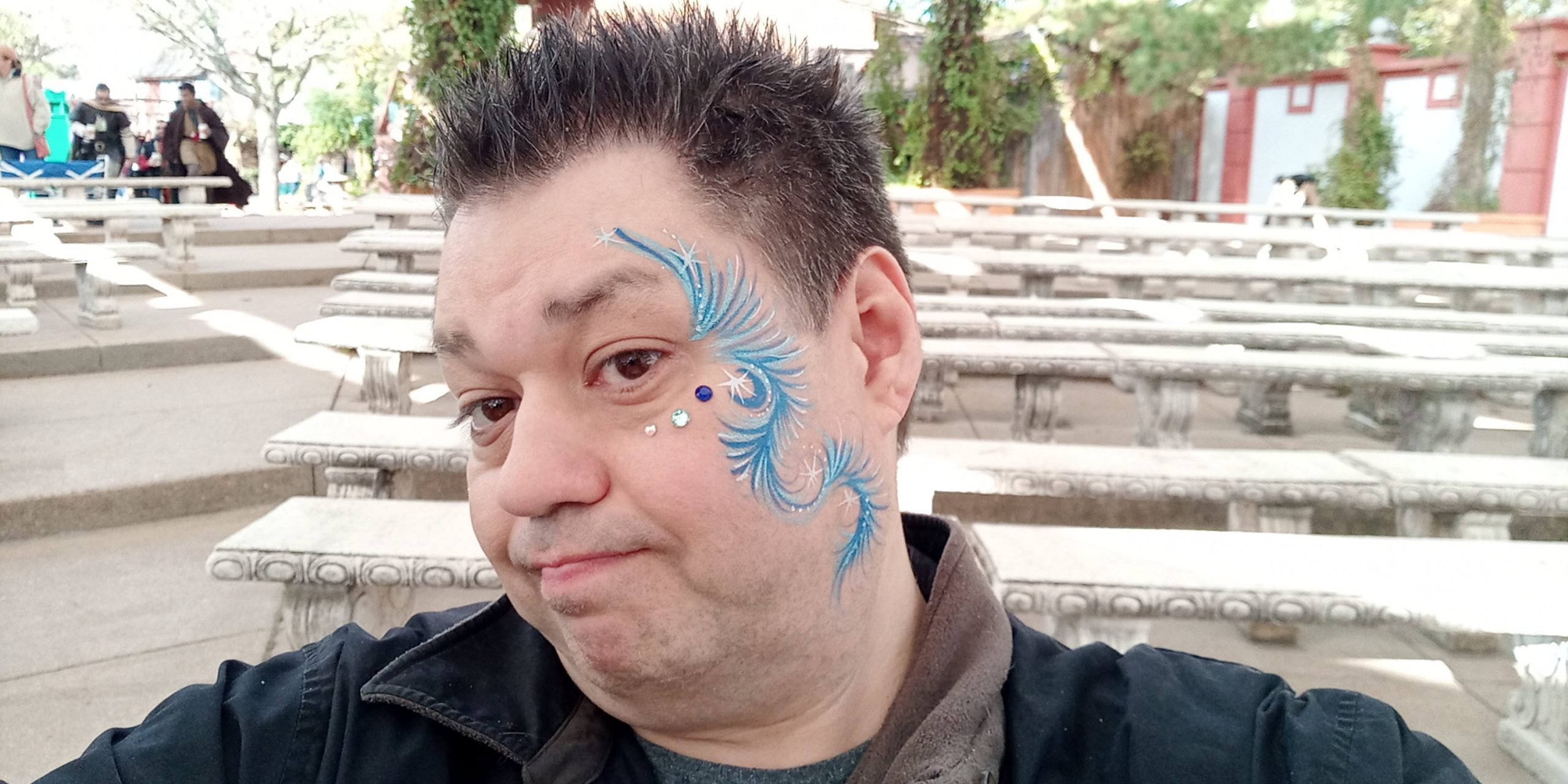 I decide to stick with plan A and head towards the Odeon. I double check my map to confirm which of the many face painters was the one recommended to me (I had asked in a face painting group on Facebook in the days prior, as I was not sure if there were still artists at TRF using acrylic paint). The first picture in the gallery below (or the one you may have seen in a prior post) was from the seats of the Odeon, awaiting the start of Arsenne’s show right after I was painted by Minga Almquist, who I now highly recommend myself.