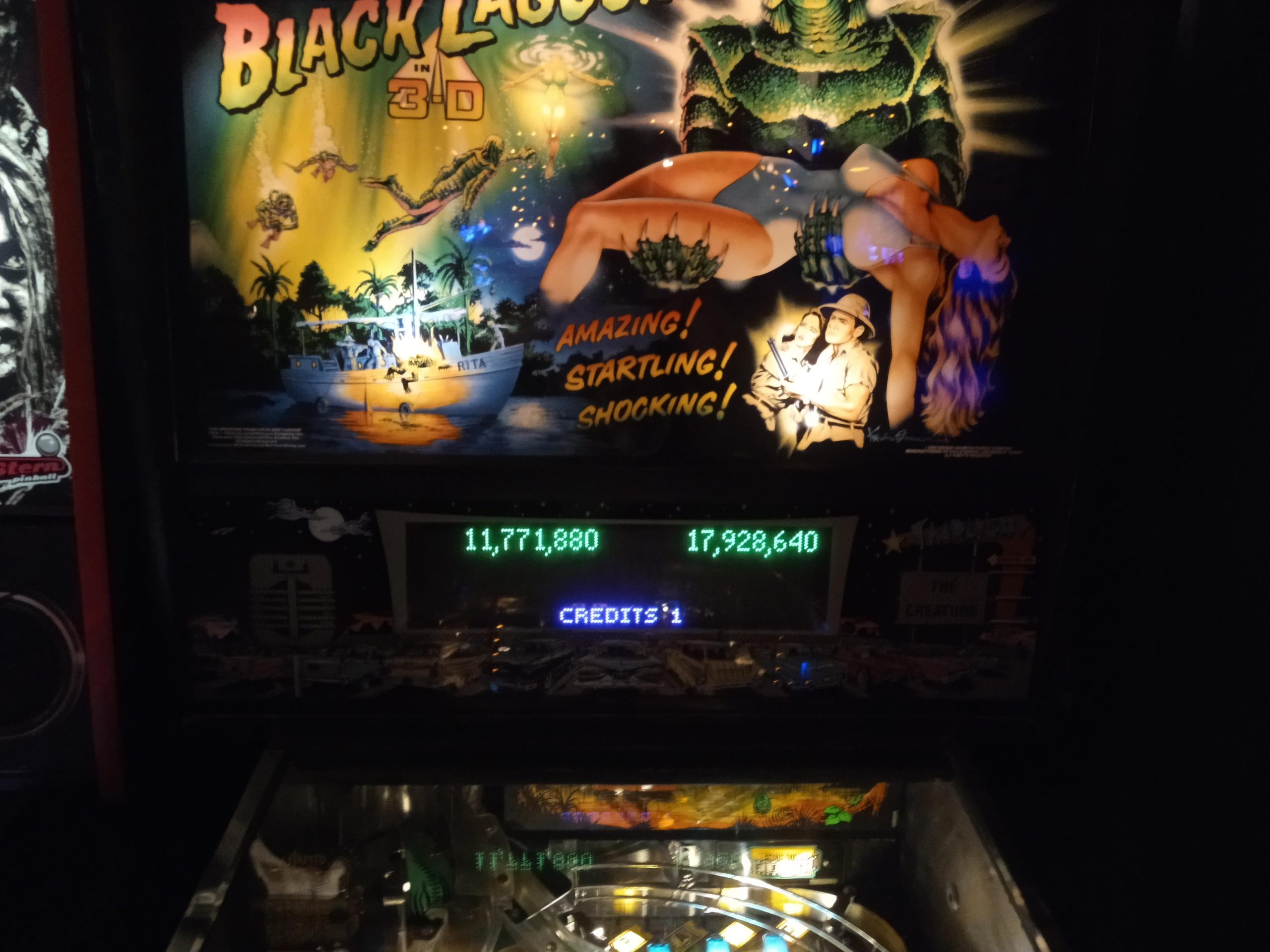 It may sound like no big deal to reasonably skilled players to put up, say, 7.4 million on Whirlwind or 134 million on Creature from the Black Lagoon on tournament settings. Actually doing it in the crowded tournament room, with the potentially nerve-wracking and headache-inducing noise level is another story. (I picked these scores as this is about where 38th place or 60 qualifying points was. The A division cutoff was at 702 or an average of 58.5 qualifying points per game, so 60 across the board was enough to make A division with a little room to spare.)