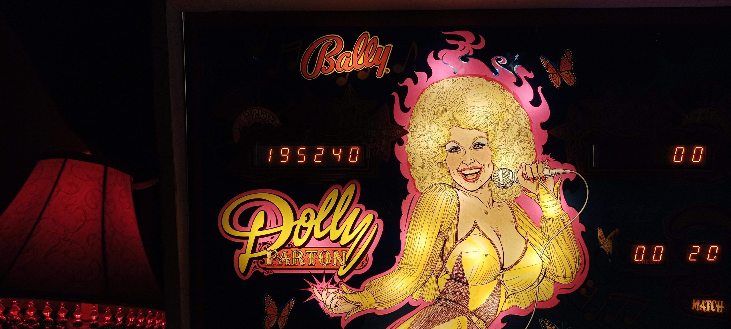 So not too long ago, yet another change was made to the lineup at Poison Girl. Attack from Mars is out, replaced with a Dolly Parton table (Bally, 1979). I’ve played this game before, most recently at the Texas Pinball Festival this year on Saturday. I put up a rather remarkable 444k+ that, for some reason, I omitted from the notable scores of the day in the original post. That score is about where the high score is on the machine at Poison Girl. Unfortunately, on this trip, I wasn’t able to get anywhere near that score, as this machine is set up much harder than the one at TPF. That, and the TPF score was the best of several games on free play; this one was my best of six games at 50 cents a pop (well, the first one was only 25 cents as there was apparently a half credit on the machine on arrival).