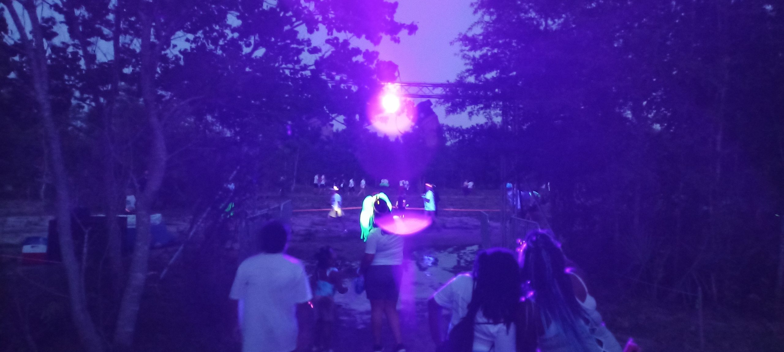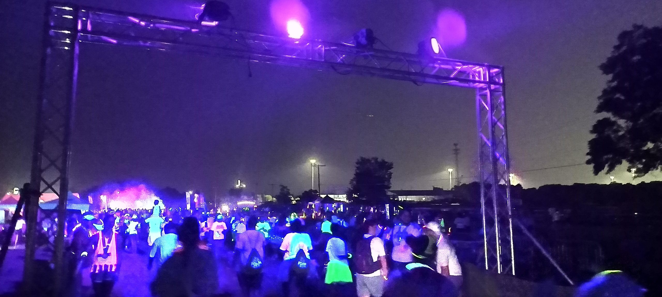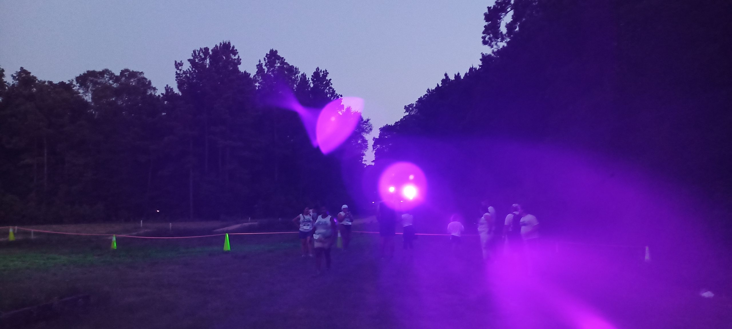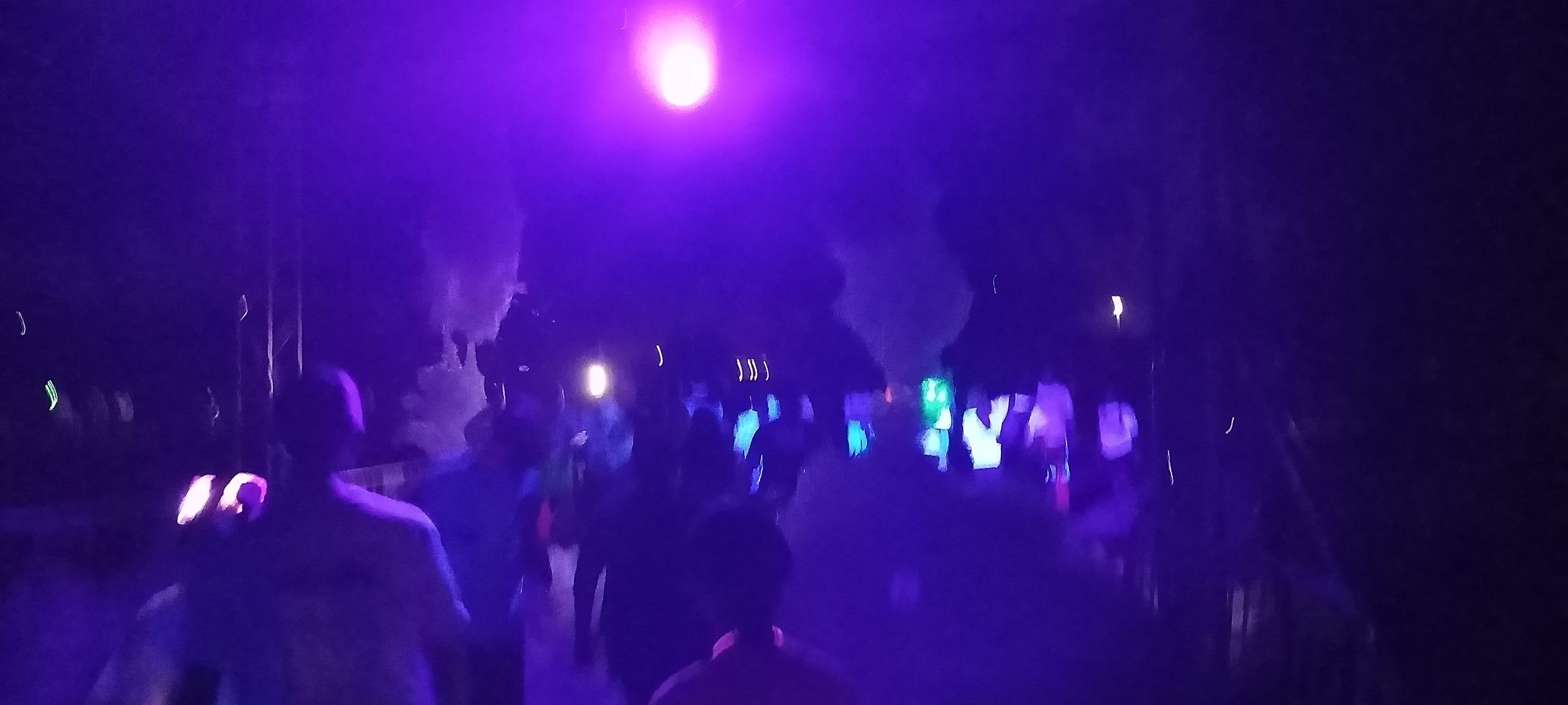 A lot of the pictures show black lights during the after-sunset portion of the event, so it is easy for the casual observer to conclude the course was lit like this for the entire length. It was not, as these were taken at specific points near the foam machines; toward the end the flashlight feature of my phone (and the phones of other participants for that matter) became quite useful.