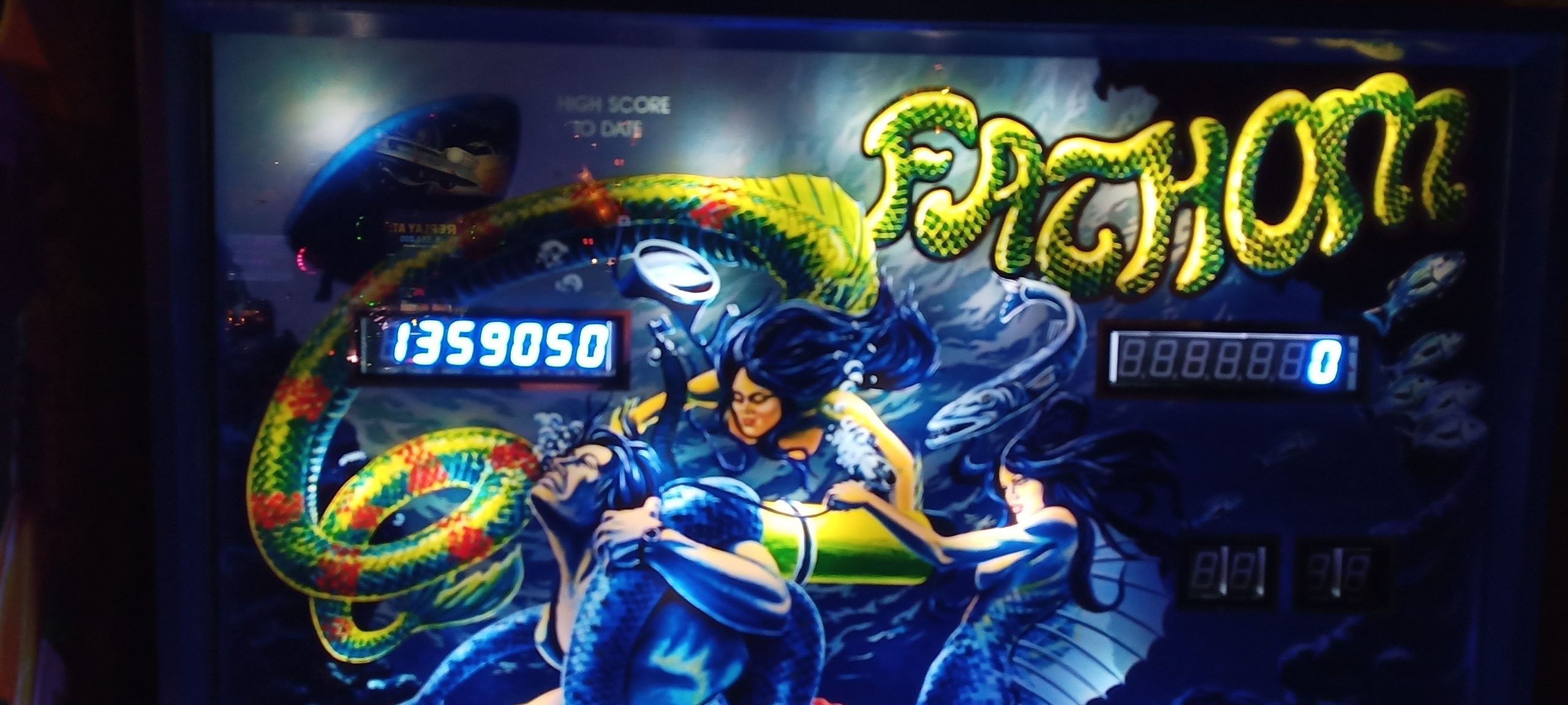 The story continues with another evening of exciting silverball action at Einstein’s in Katy. This was shortly after Fathom Revisited was brought in to replace Meteor. Honestly, of the two, Meteor is the game I like a bit more, though Fathom can be a fun game to play as well. Indeed, this remake of Fathom was the one that got at least a plurality if not an outright majority of the quarters in my pocket that night.