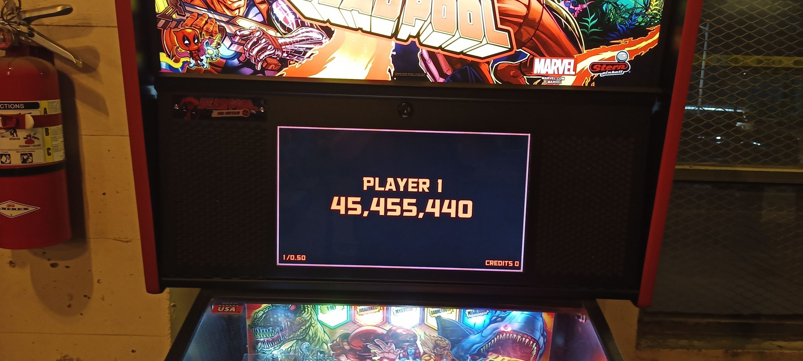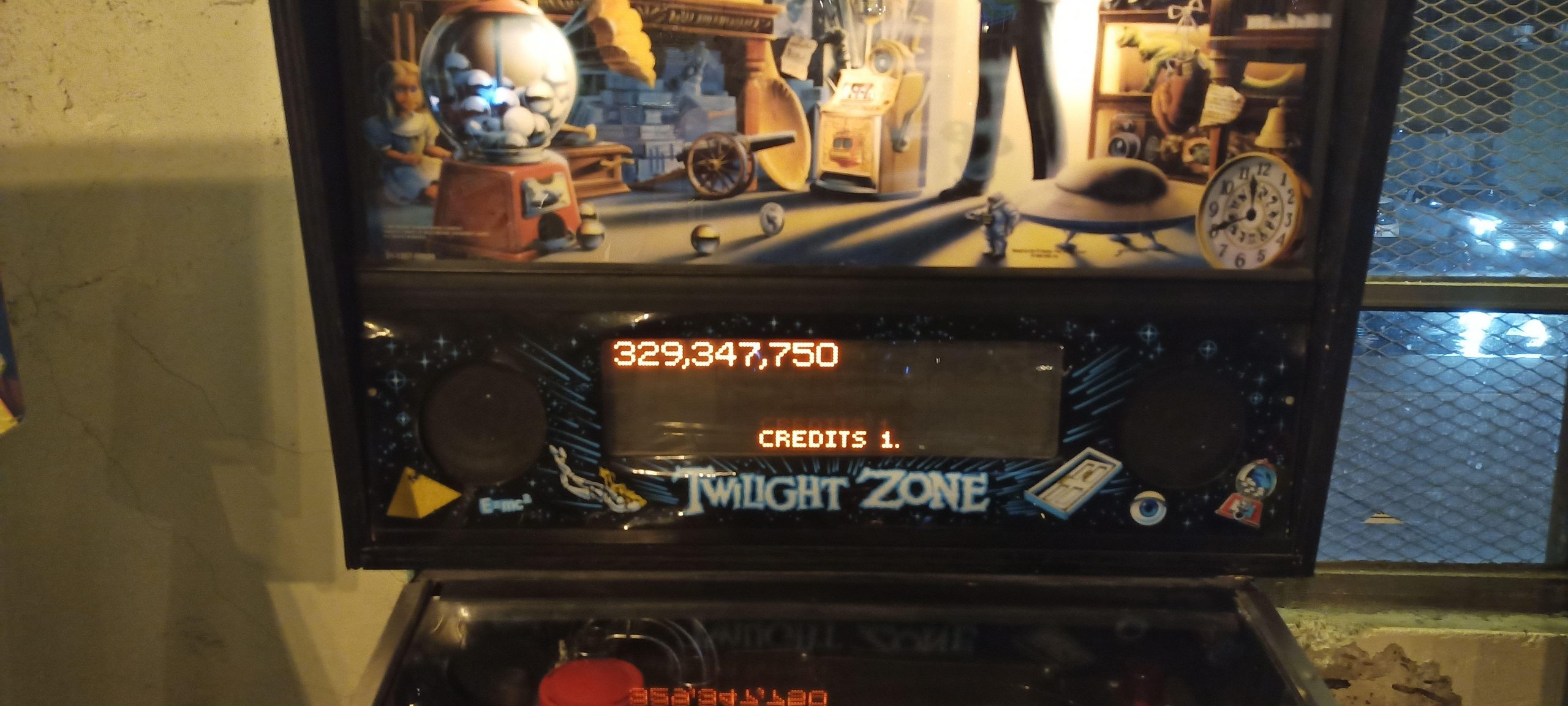 According to Pinball Map, there was a Deadpool (modern Stern) and The Simpsons (Data East). What was actually there was a Deadpool and a Twilight Zone. I mostly played the latter, as you do not often see a Twilight Zone out on location, much less set for coin play in an establishment not really aimed at hardcore pinball players. Indeed, the upper flipper’s performance left a lot to be desired, and I resorted to skillful and/or lucky rebounds to make the player piano shot. I consider 329.3M+ pretty good given this issue.