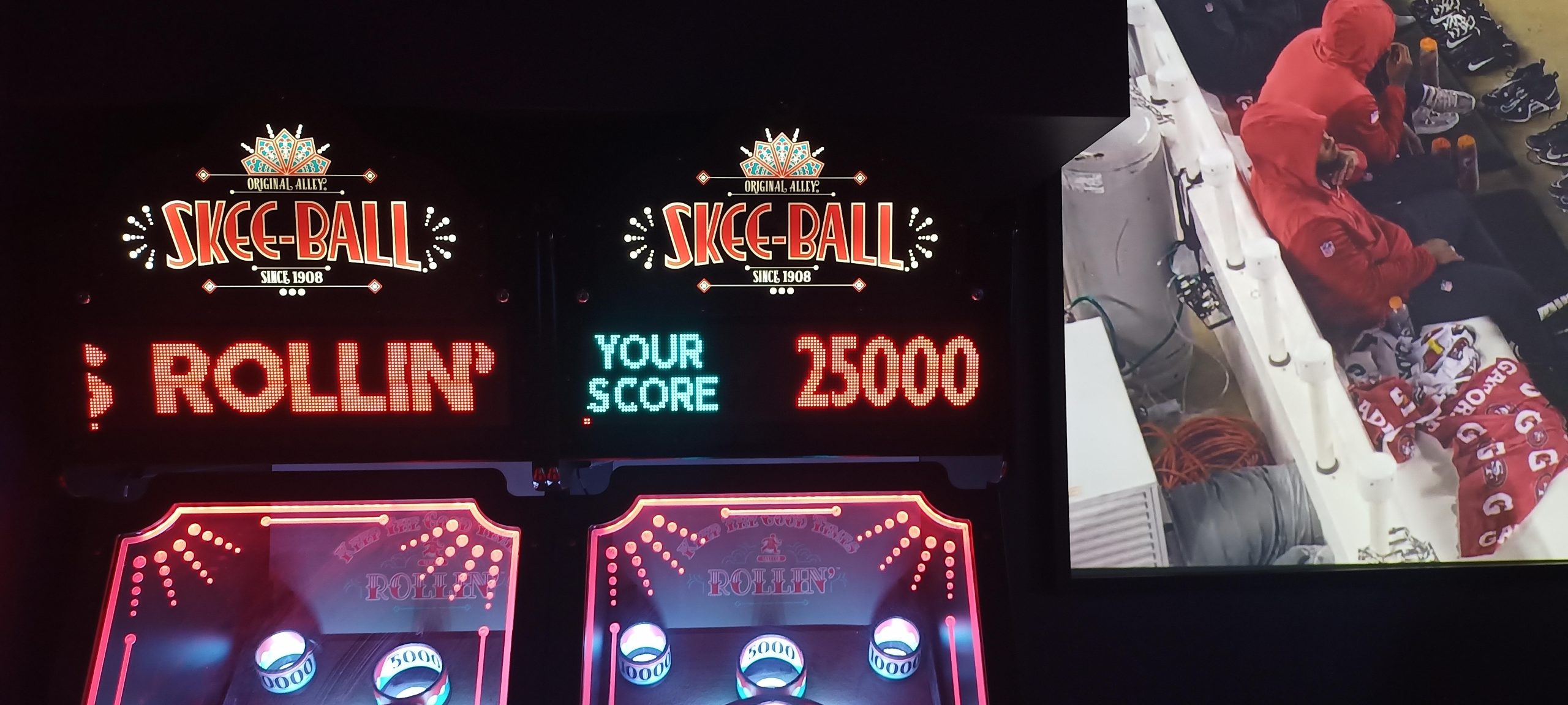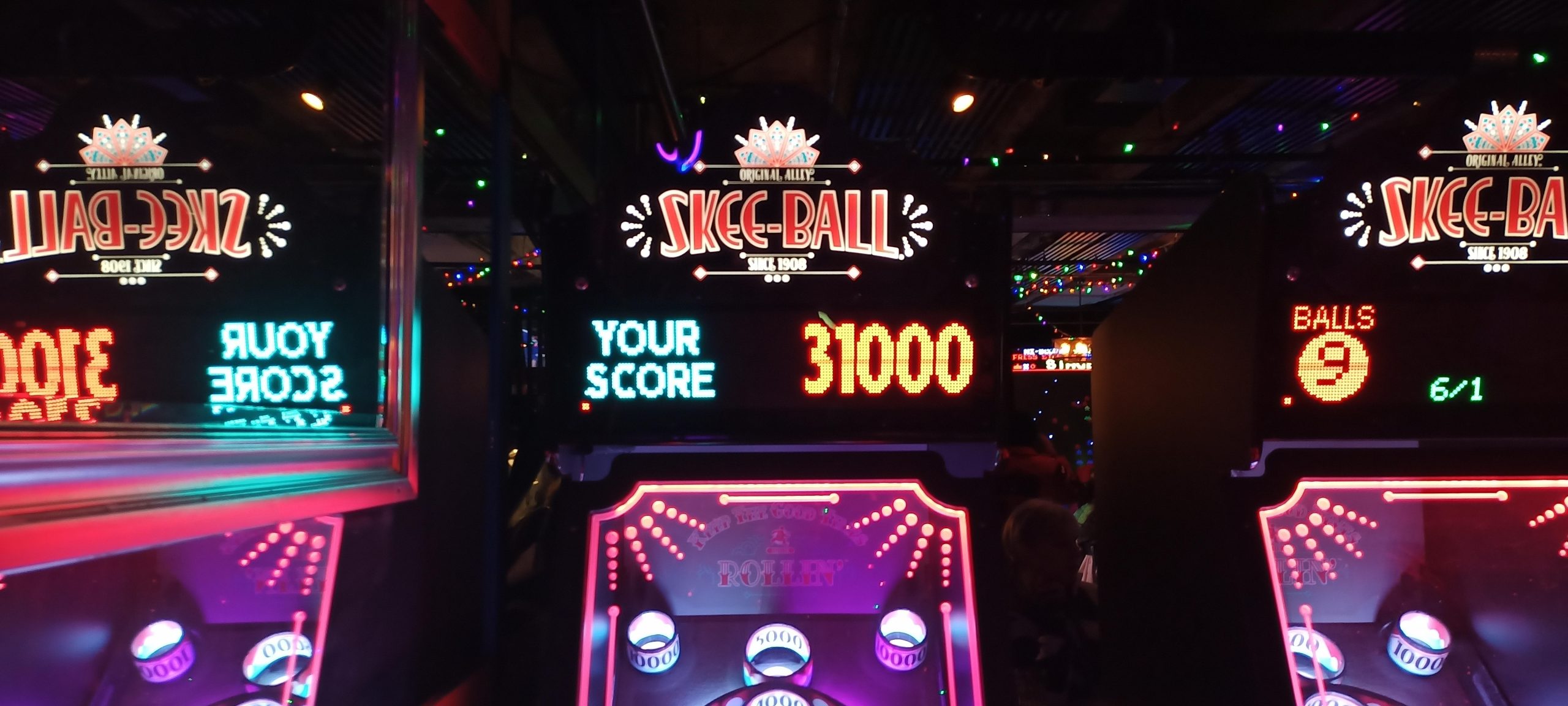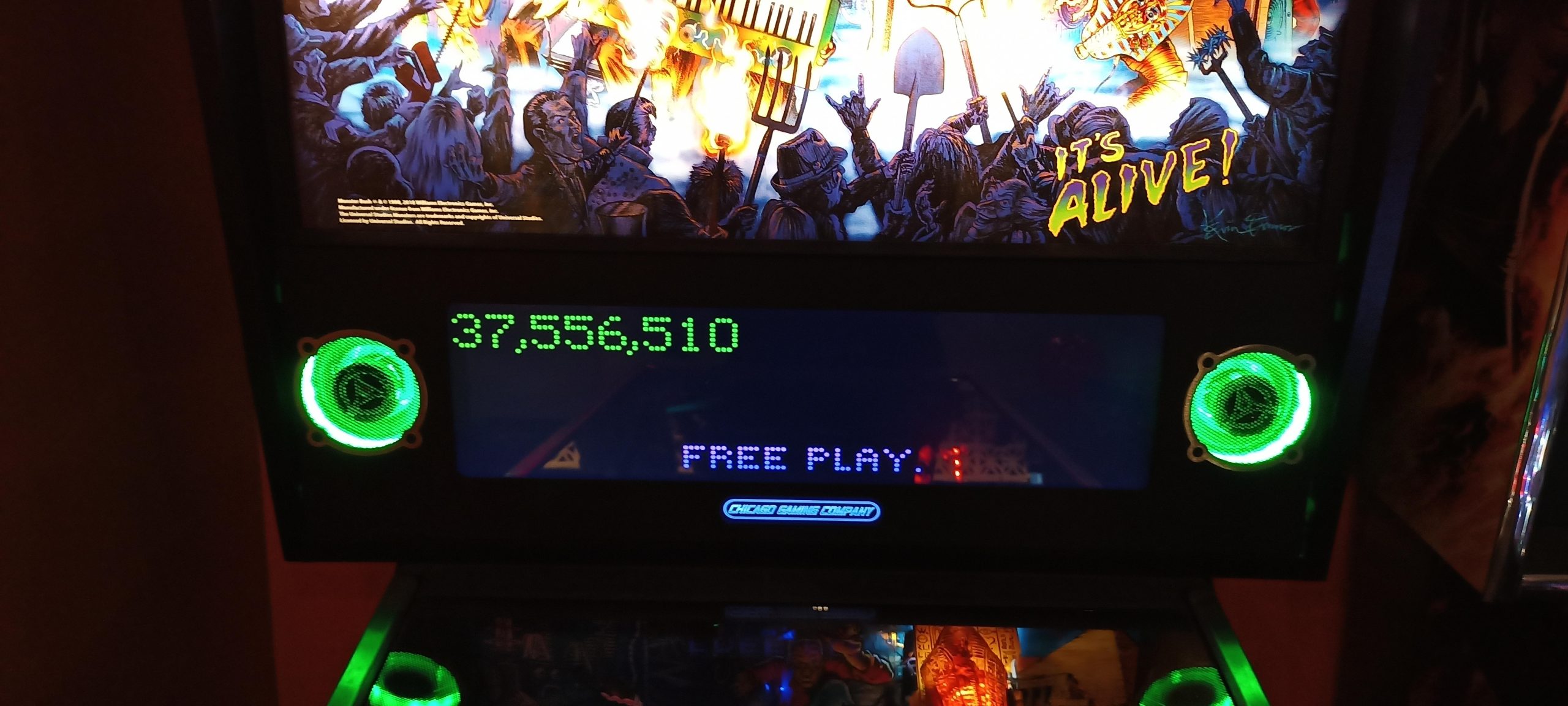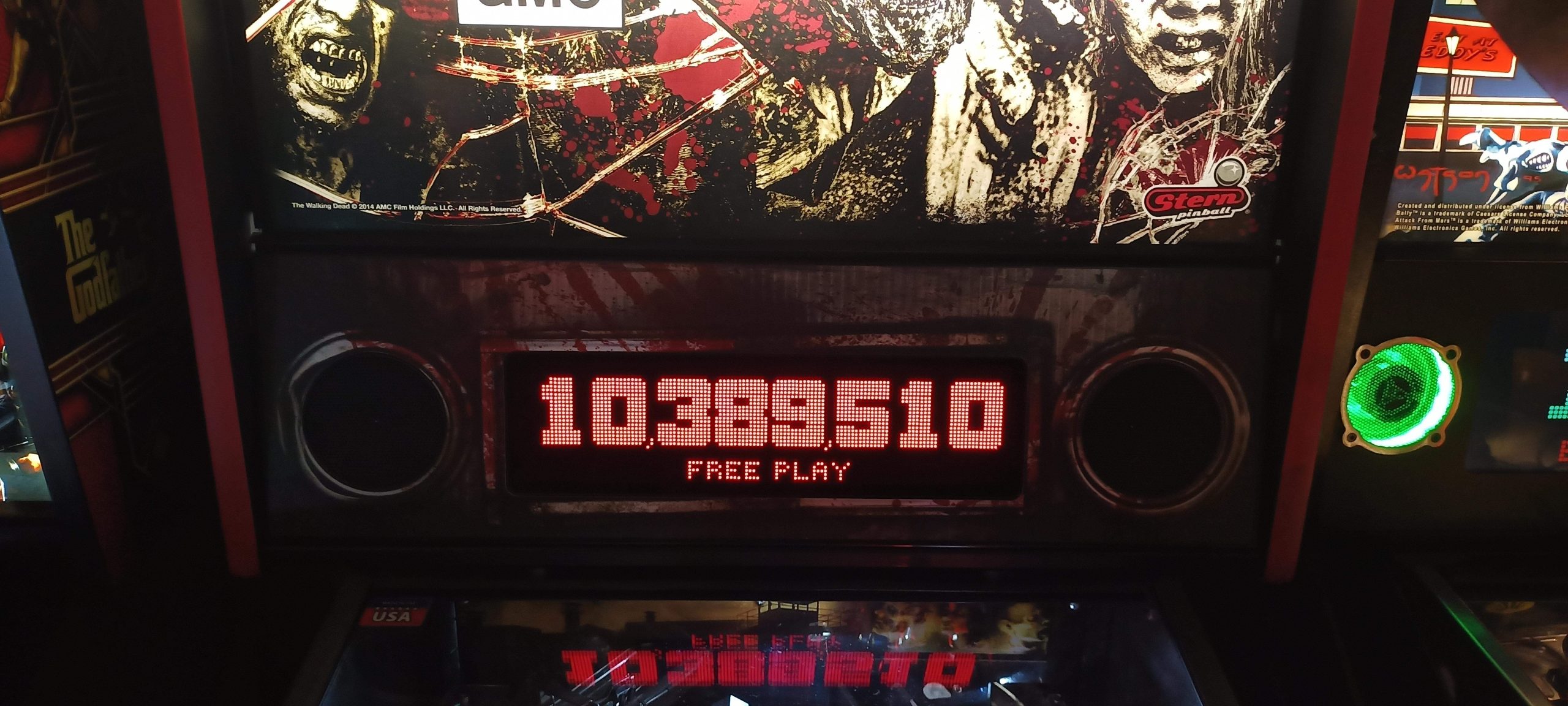 I’d start off with a real stinker of 1.35M+ and would wind up winning enough replays to turn that five credits I started with into a whopping sixteen games actually played, lasting easily an hour and a half. (I’d have to dig up the photo timestamps to compare the sessions during which I put up other high scores, but they are probably about the same or slightly longer.) By the time I was done, the score to get a replay had skyrocketed to 10.2M (it started at 4.2M) and I had put up three of the four lower high scores: 23.1M+, 18.4M+, and 10.5M+. That left only PBK’s 13.9M+ of the high scores that were up on my arrival.