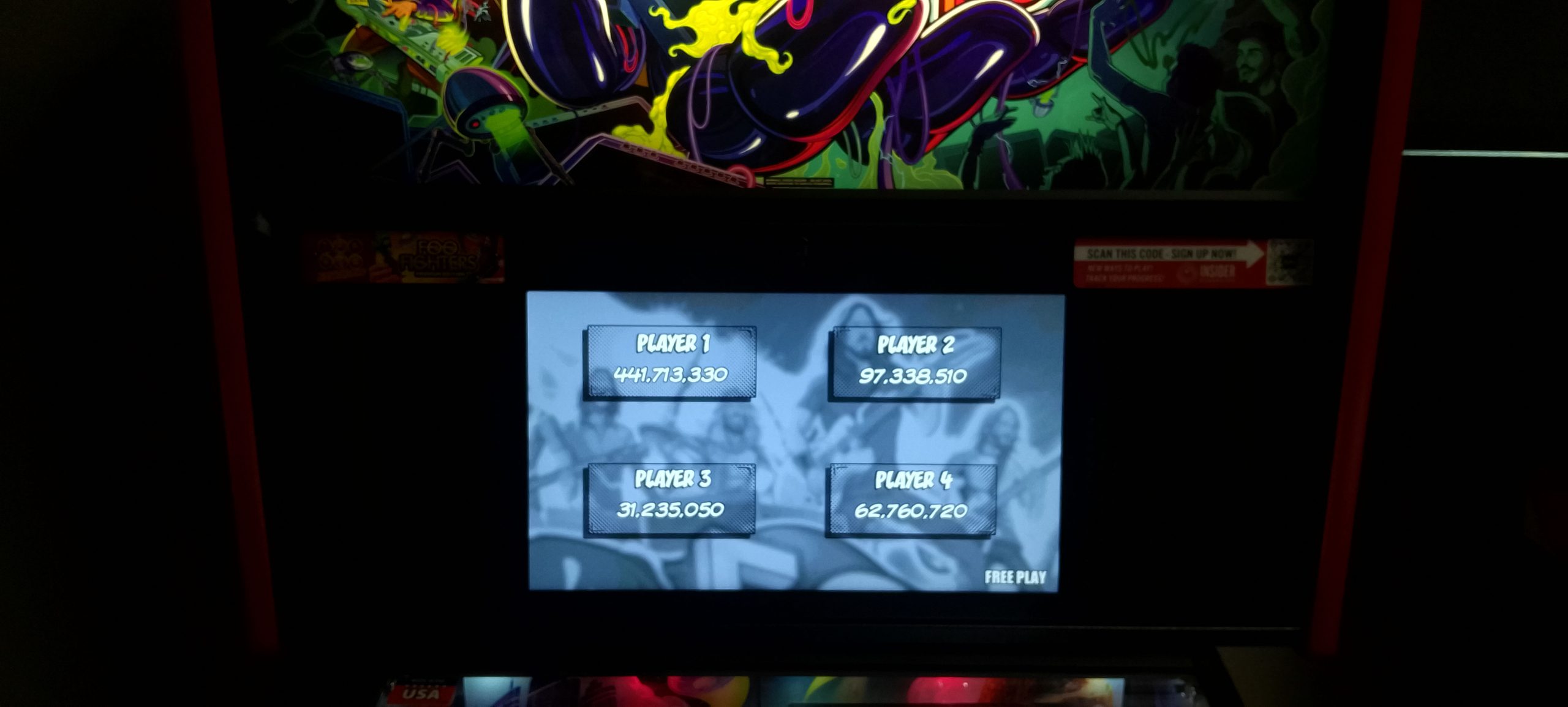 The second game of this round would be Foo Fighters. I had a decent first ball (playing fourth). Unfortunately, Jack just ran away with the game early on, posting an impressive 441M+. I would wind up taking third behind Ken.