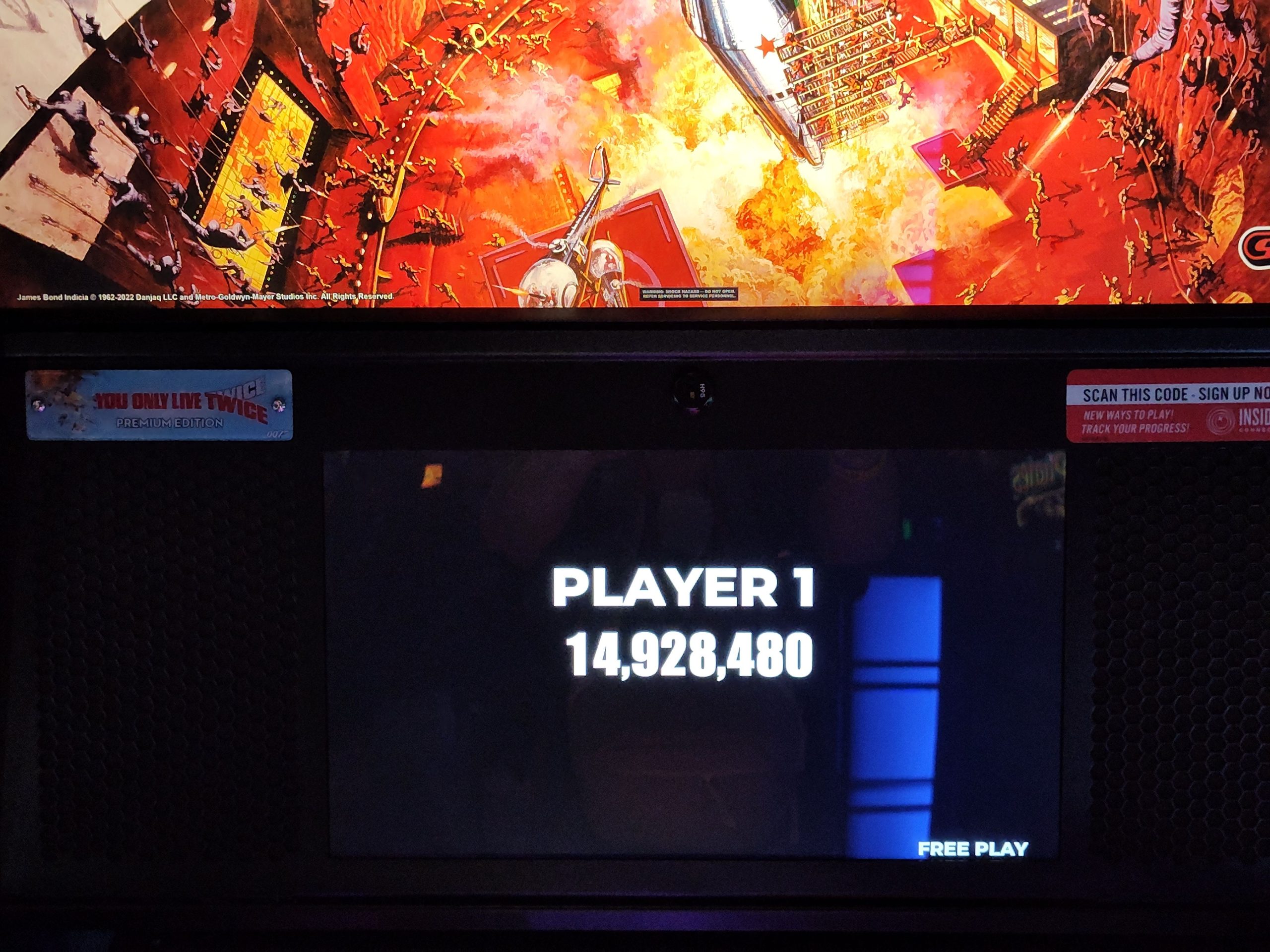 My best score was the first game I played, 183.2M+. I feel I made a pretty good run overall, winning three replays by score off of two paid credits, with an end-of-game match accounting for a fourth, for a total of six games from $2. (Well, actually, $1.25 to me as there was ¾ of a credit on when I walked up. But it would have been $2.)