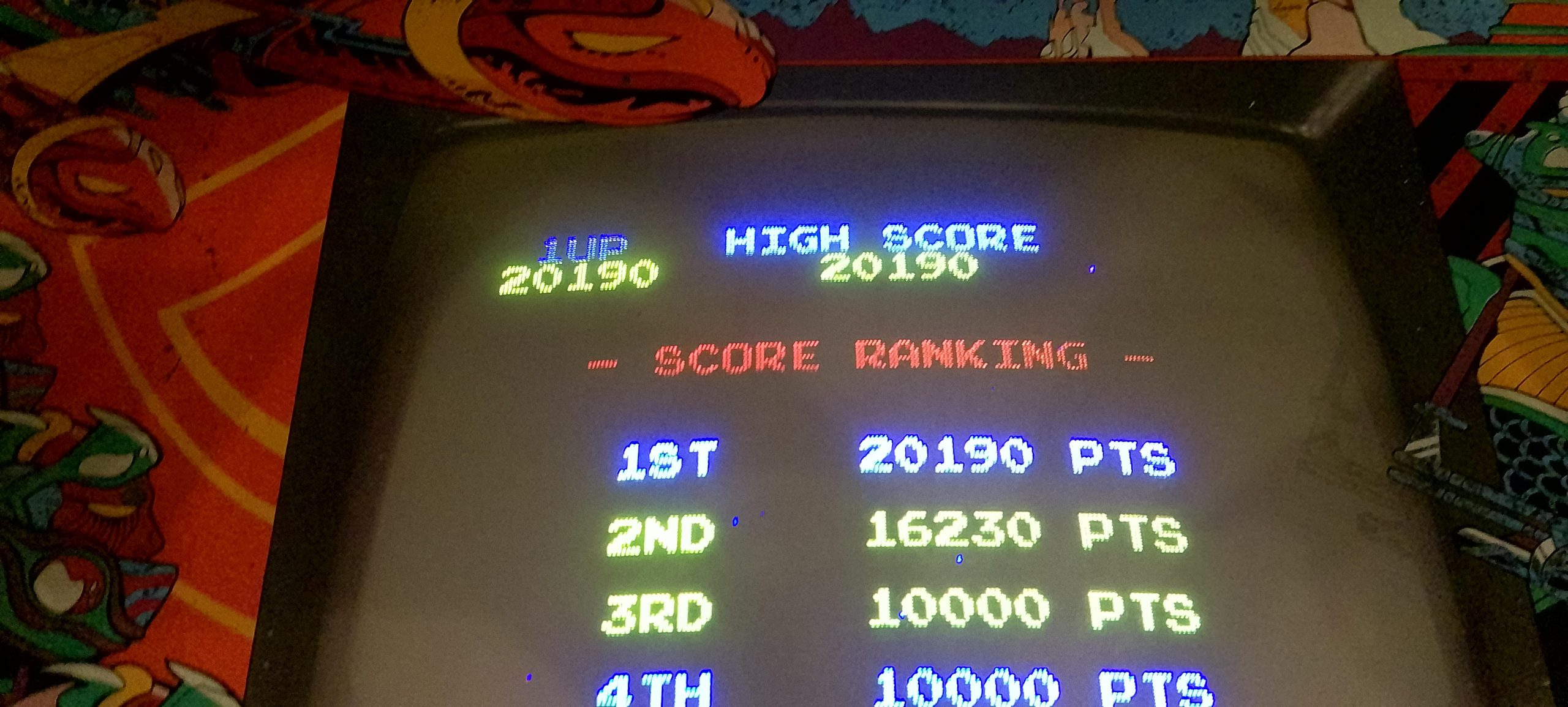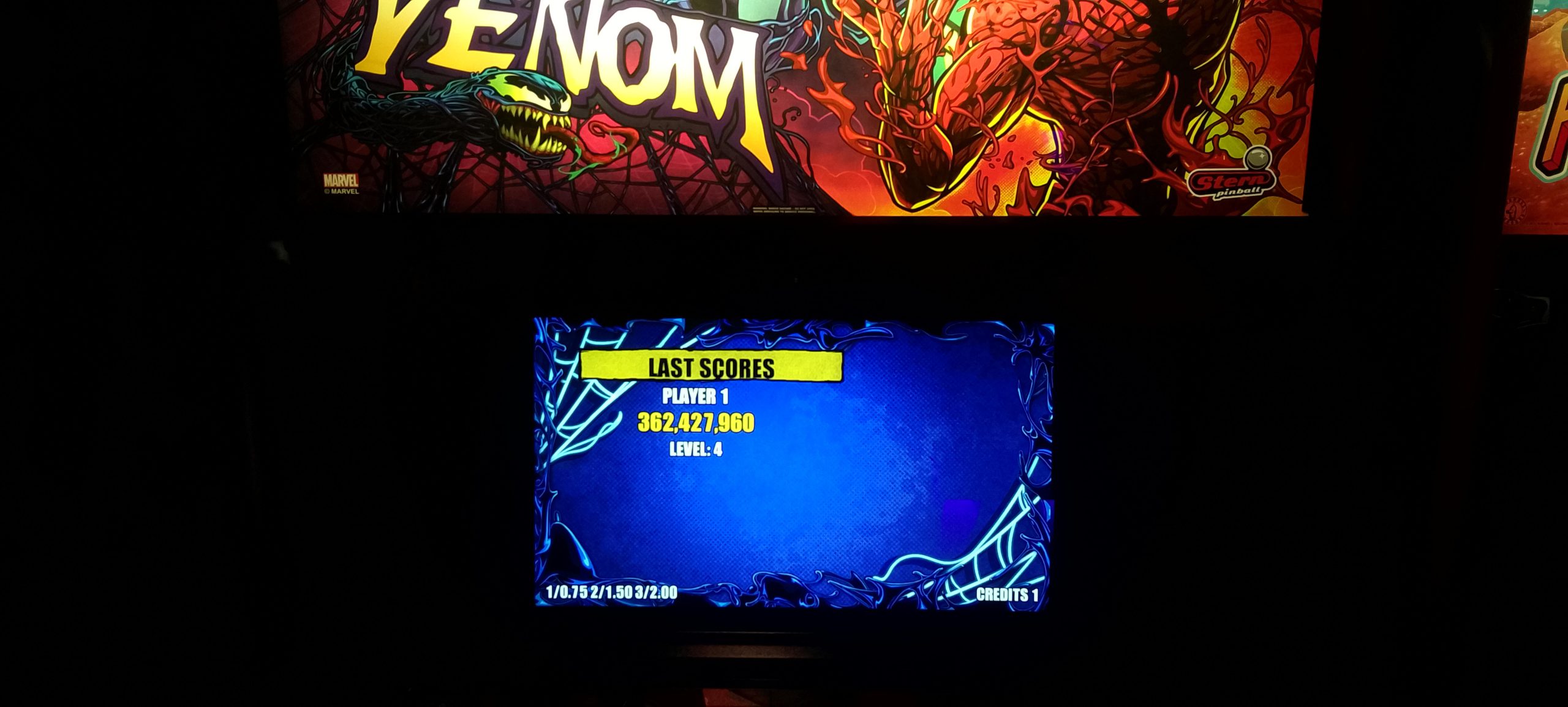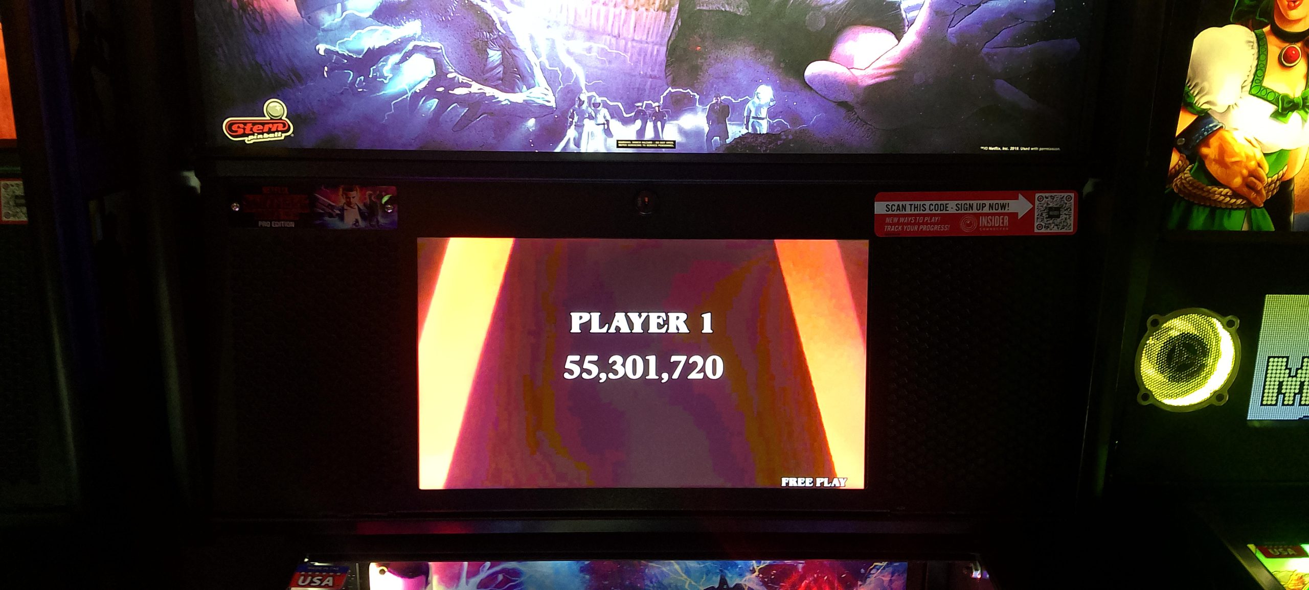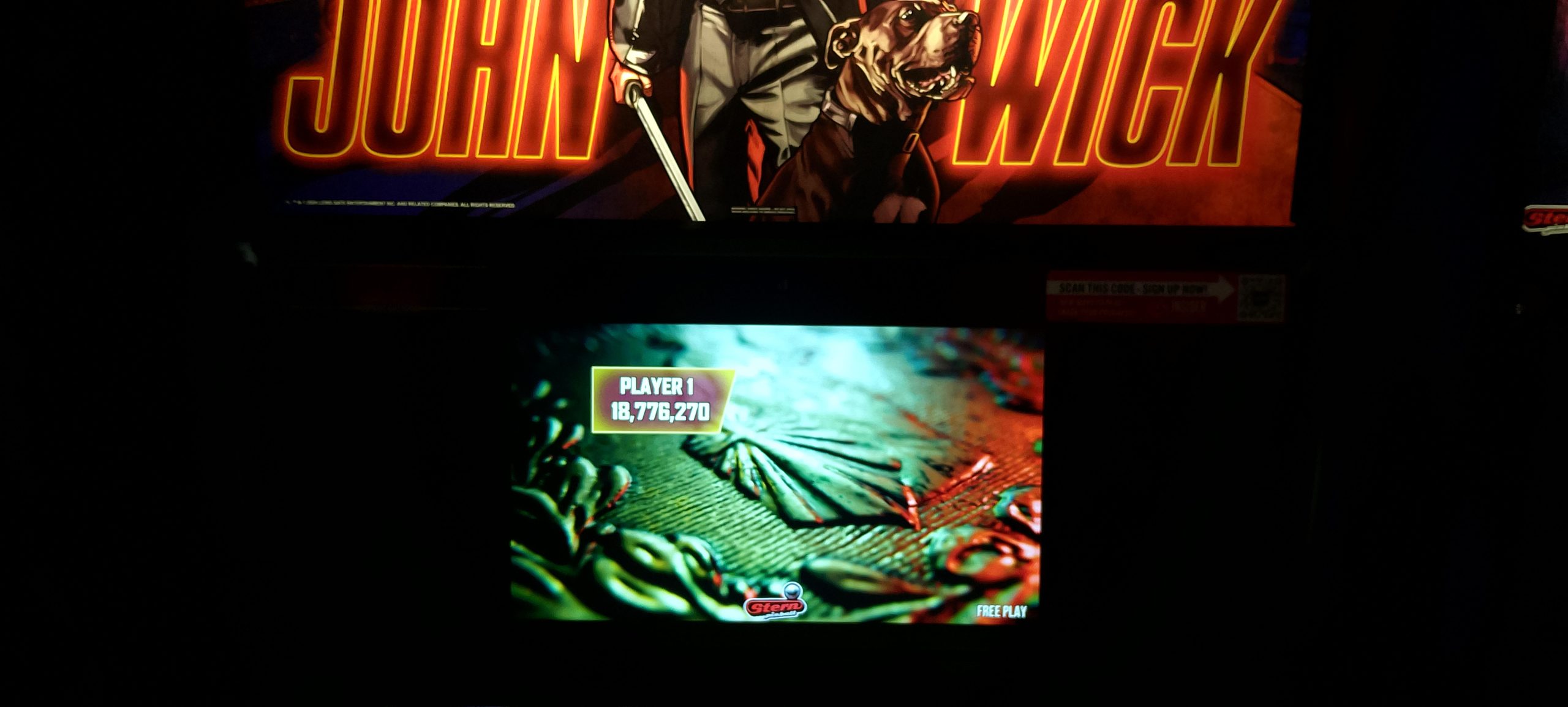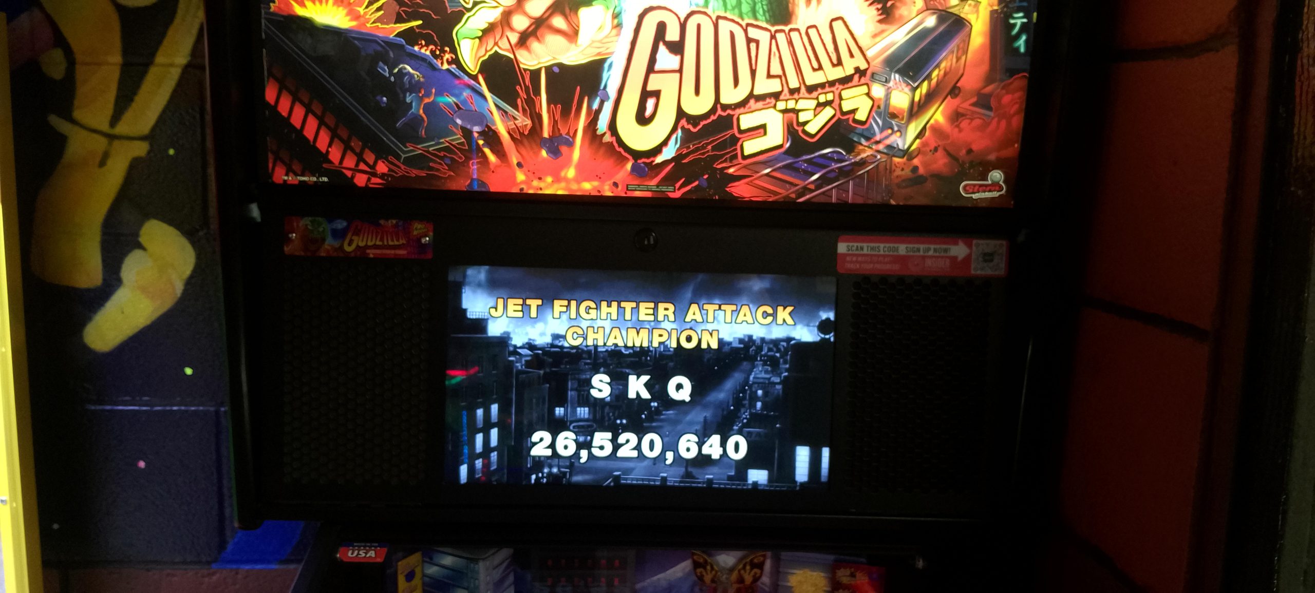 This wasn’t one of my better arcade visits, especially in the pinball department. I never got too much going except for one game of John Wick (Pro) and one game of Stranger Things. Something I’m noticing is that at least a couple of games were set to have rather tight tilts (a.k.a. “gesund-tilt”), among them Avengers: Infinity Quest. I think I was able to finish one ball out of two whole games without tilting, thus the anemic score (the better of two attempts, admittedly not by a lot). Balancing this out was one of my better runs on Frogger, a reasonable score on “Congorilla” (Donkey Kong bootleg/hack, which plays all four stages from the first round), a decent run on Turbo, and one of my better runs on Scramble.