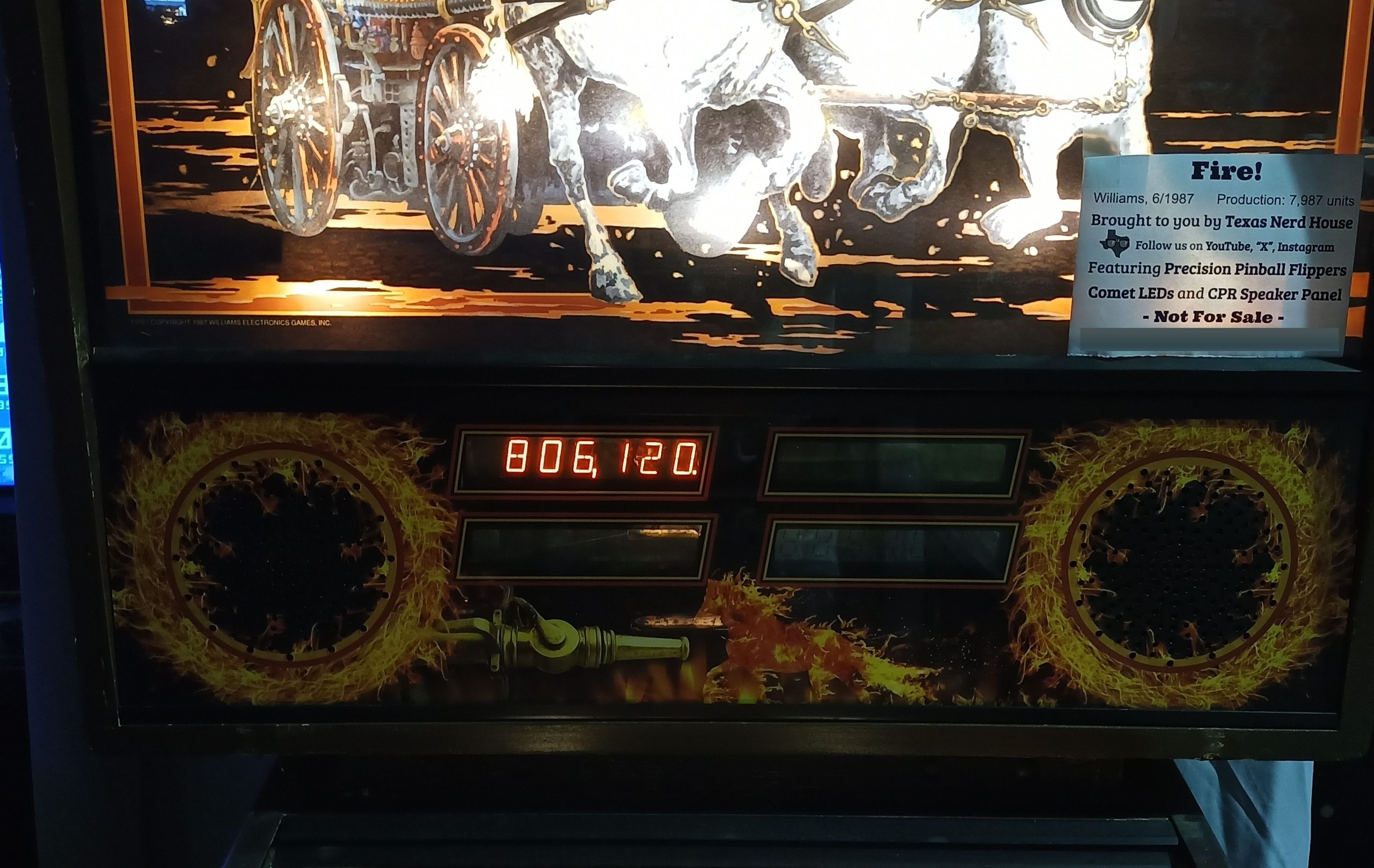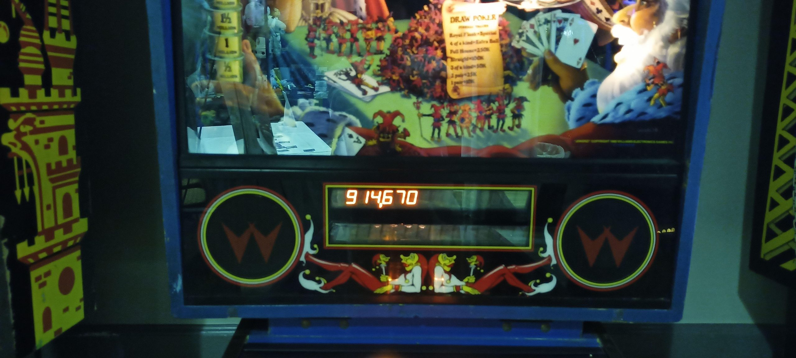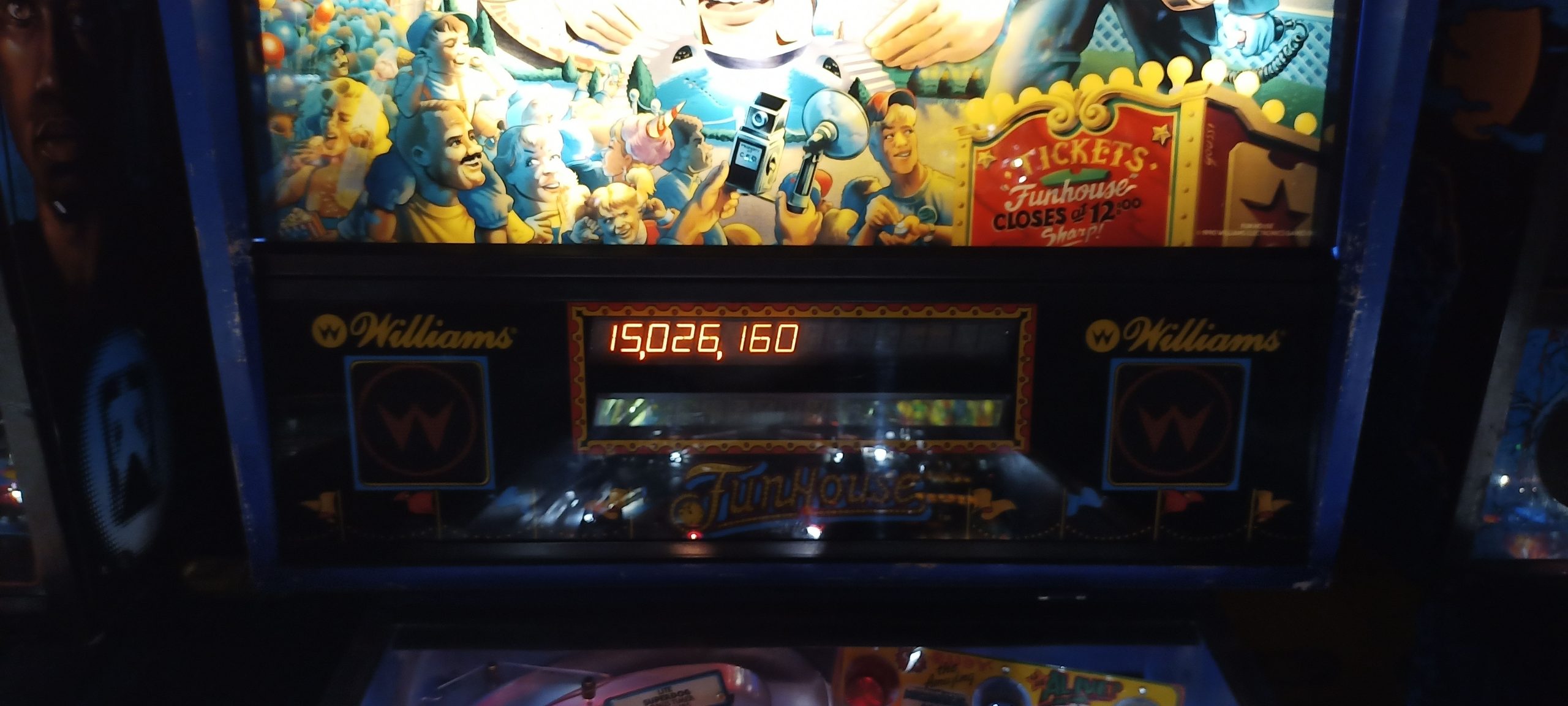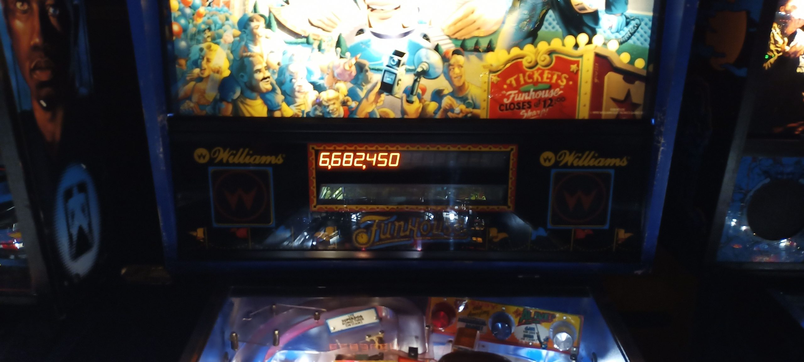 So, like I did on Saturday, I played a couple rounds trying to get into it. And then, a breakthrough: special was lit on the right inlane and the #3 lane on top, with the game set on novelty settings (special scores 100,000 points). I would hit at least three specials, signing off with a grand total of 929,310. Almost immediately after that, I would put up a 15.0M+ on Funhouse. (To me, Rudy’s scream on hitting the million plus trap door is one of the most satisfying sounds in all of pinball, and I was glad I got to hear it at least once this weekend.)