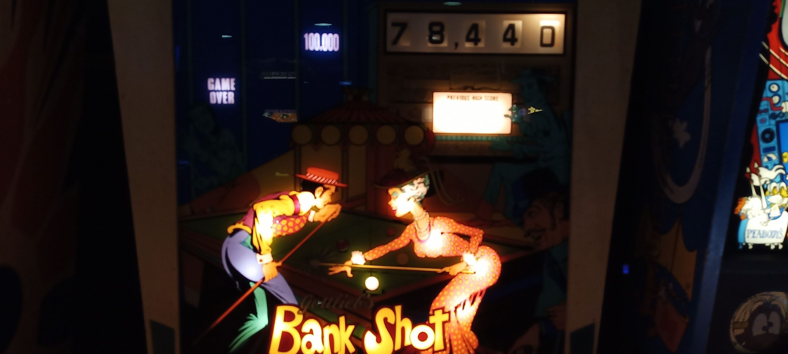 I had at least one standout high score for Saturday: the 278,440 on Bank Shot. This is the reason for the intermediate score of 194,340 right before it. Bank Shot can only display scores up to 199,990. (It does not indicate a second rollover of the five-digit counter.)