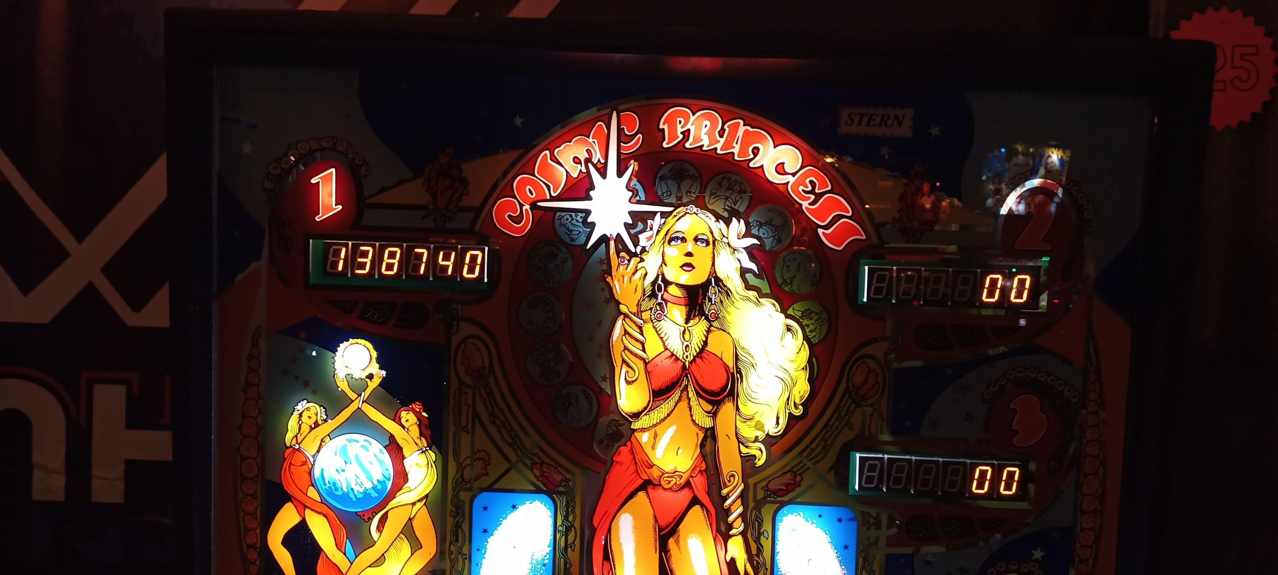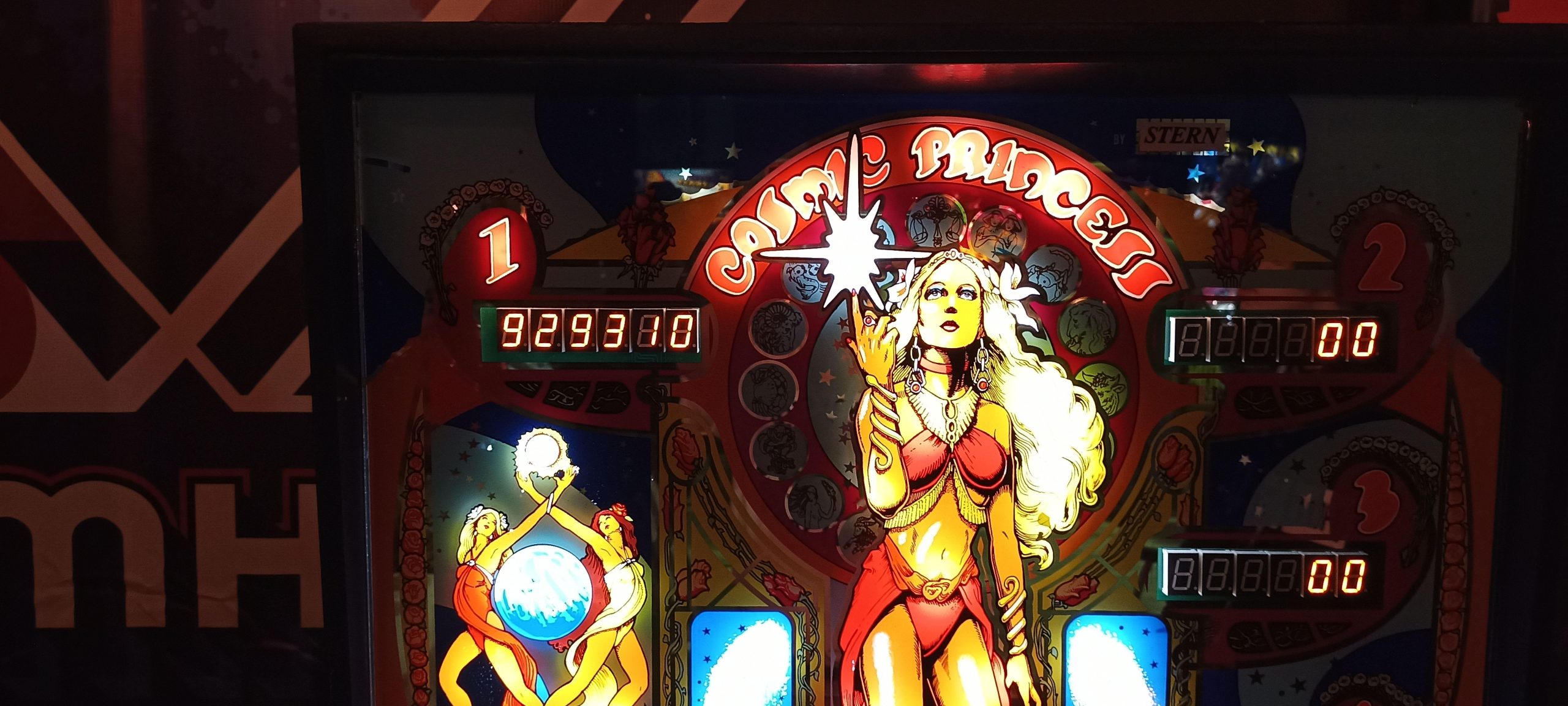 After that, time for some more pinball. The biggest achievement by far would come from my stop over at Wormhole Pinball’s booth. They had two pinball games on display. One was Bally’s KISS which I didn’t play. The other was Cosmic Princess, a rare Stern title from 1979. This game was actually made by an Australian company called Leisure & Allied Industries under license from Stern. It uses the same game ROMs as another Stern game called Magic (but not the same playfield layout).