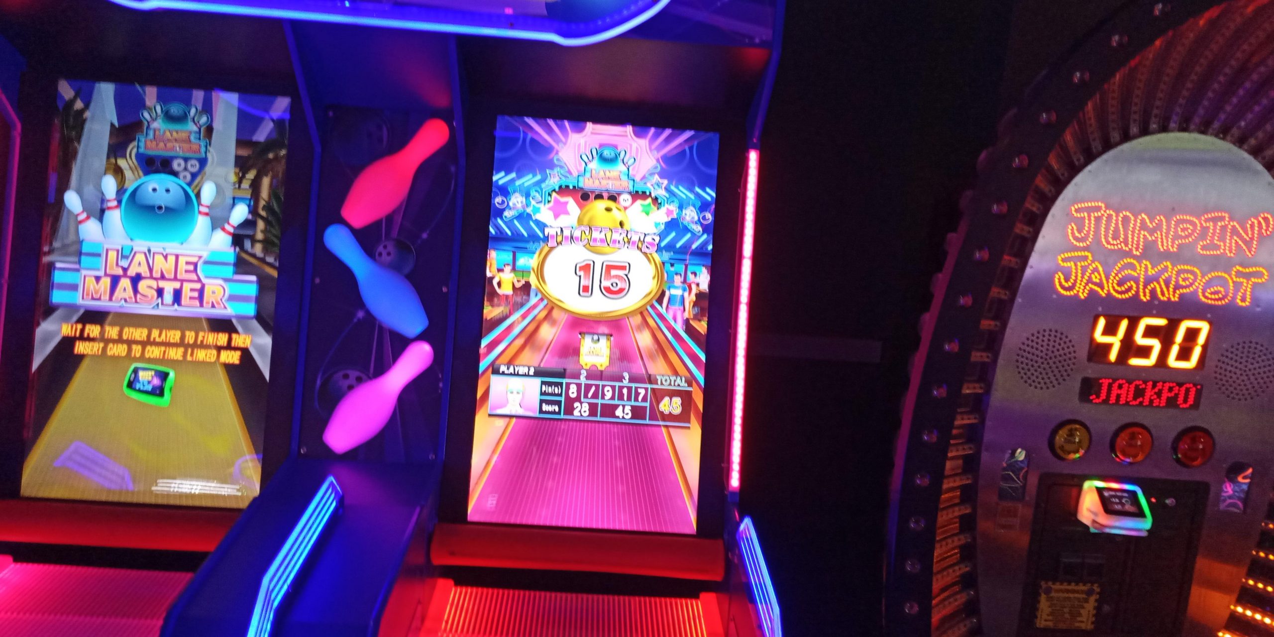 I would begin with a quick one-player game on Roller Disco. Now that a proper steel ball is installed in this machine (the last time I got to play it at the location in The Woodlands, they were using a pink ceramic ball of the type used in Twilight Zone for the “Powerball”). I put up a not-too-shabby 134.5k+, and so we began.