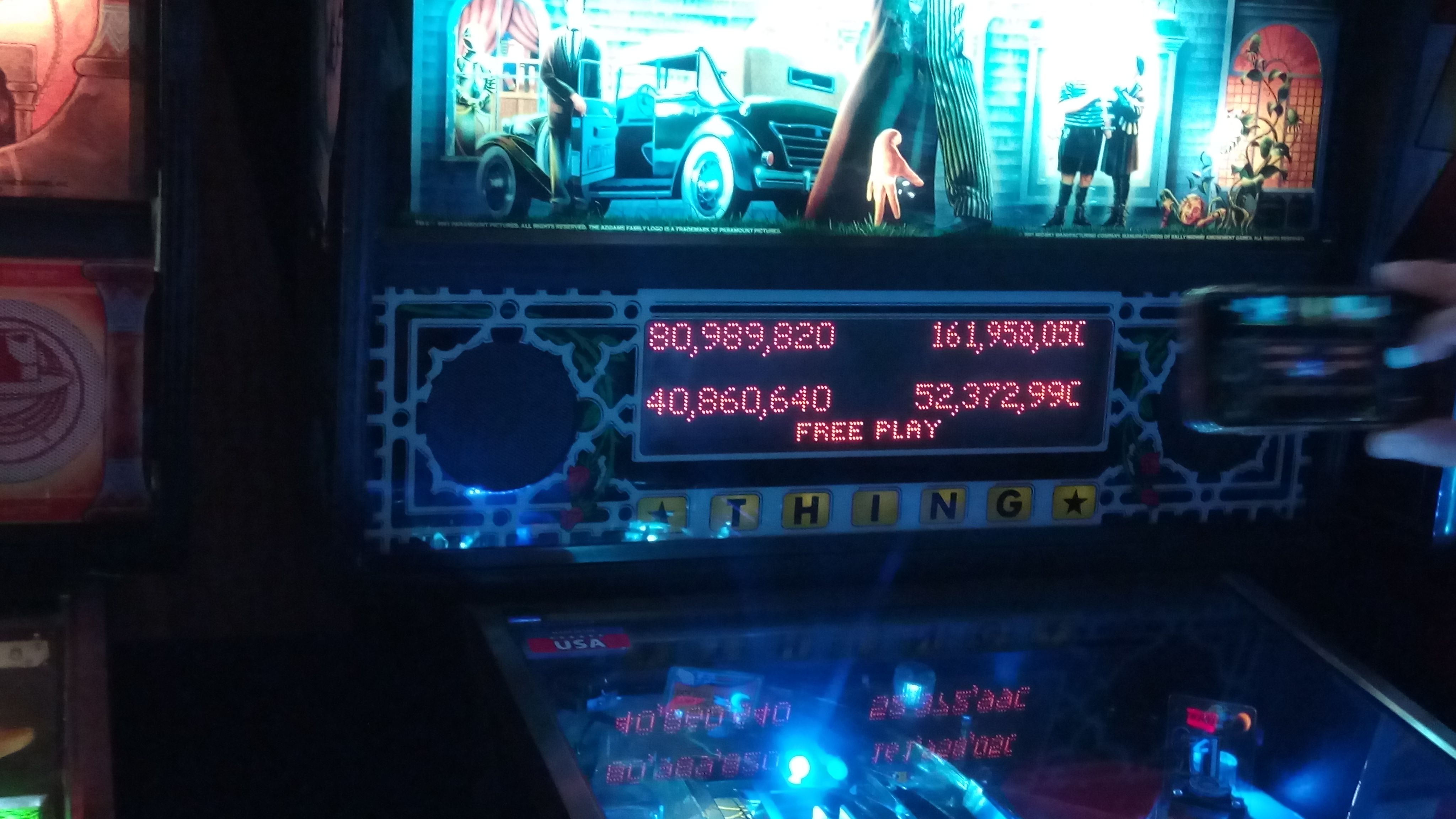 Next up was The Addams Family. This game was a bit closer, as I had a very small lead after ball 1 (18,743,200 to 18,183,050). I would wind up trailing going into ball 3 with 37.2M+, against the leader’s 47.9M+. I would get to 80.9M+ which would hold up for second, but it was surpassed by John Speights during his third ball.