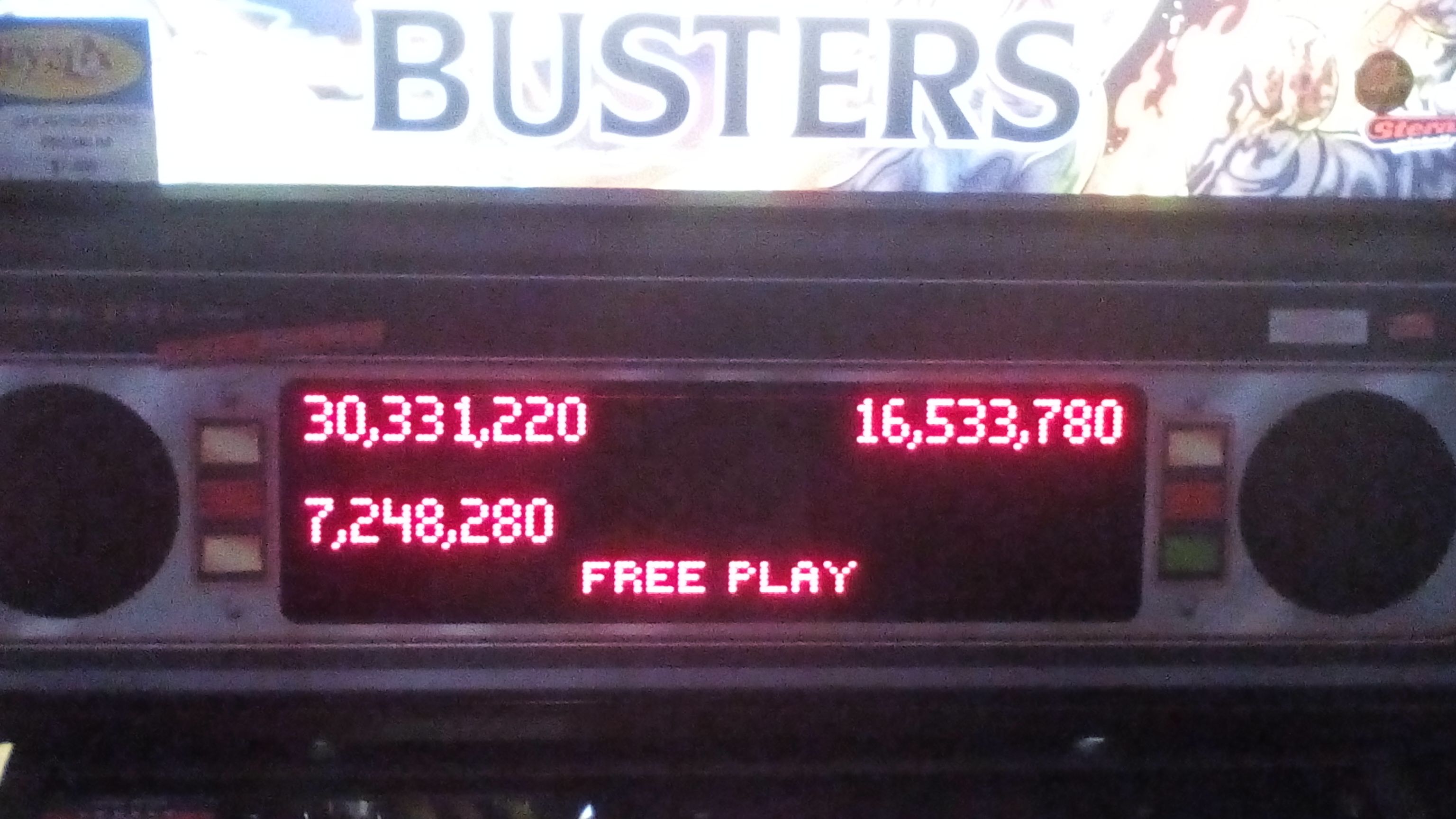 Funny I mention spirits, because we would start off on Ghostbusters. I had a couple of fairly decent games on this title during warmups/practice (the 93.6M+ pictured, and a 49.3M+ and 35.0M+ that are not). This game, however, would be anything but decent. I couldn’t make a skill shot to save my life. Marc, on the other hand, would cheese his way to a first-place score by getting an easy 59M+ from the video mode on his third ball. While it is harder to make skill shots (the timer is shorter than the one at EinStein’s). This, combined with the difficulty in getting intermediate scores due to the entire display being used for the skill shot selection (something that most other Stern titles don’t do, with Wrestlemania being perhaps one of the only other exceptions I can think of), has me really hating the Ghostbusters pinball as released and updated. It’s a shame because the theme is great, and the gameplay wouldn’t be so bad if the scoring issues could be fixed. Anyway, 15.5M+ is good for third behind Marc’s score and Chris’s 37.7M+, so I start off the follow-up to my white-hot 23-pointer last week with a whopping two standings points.