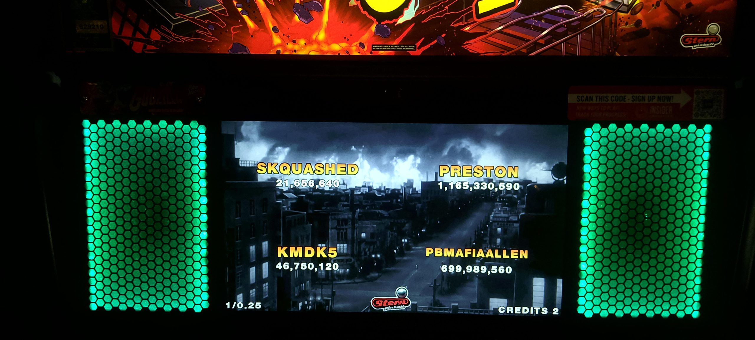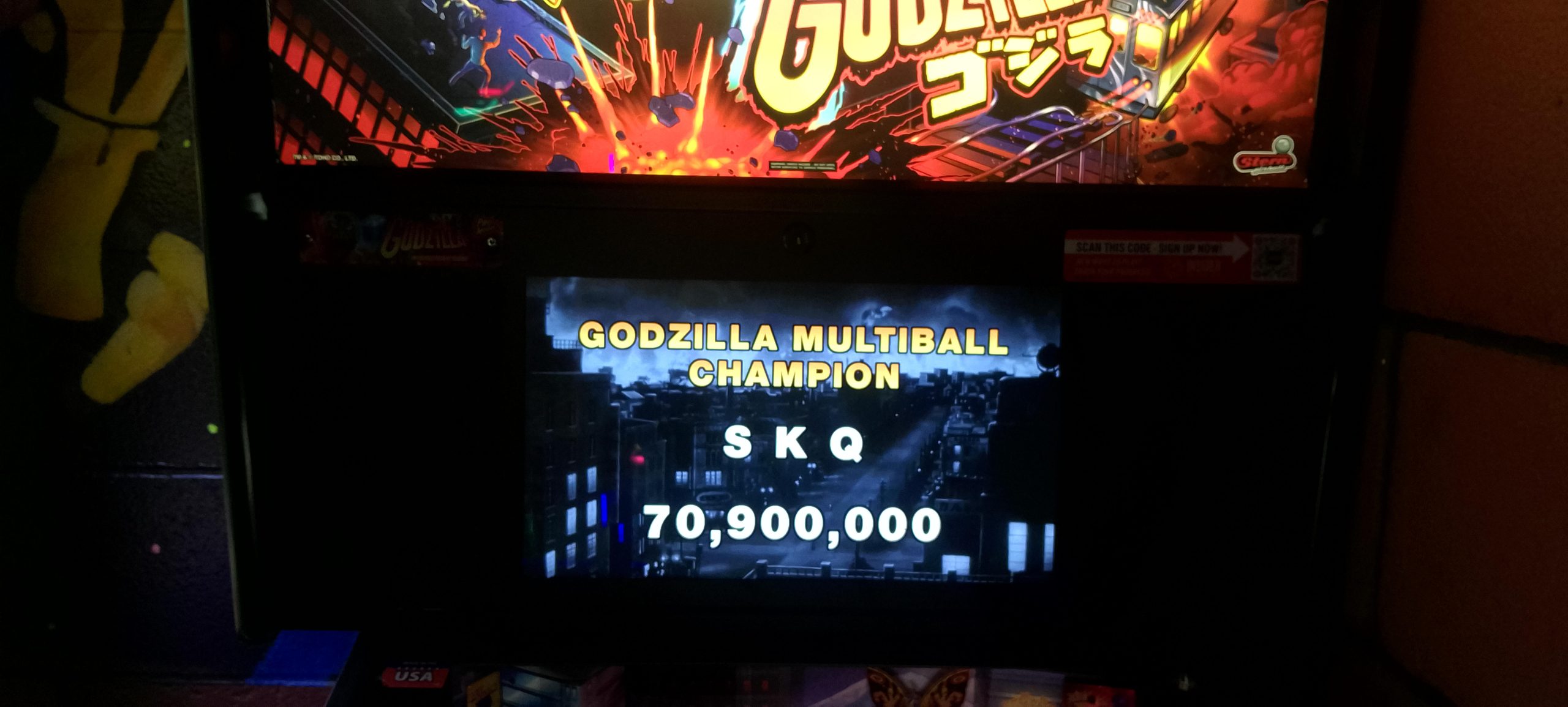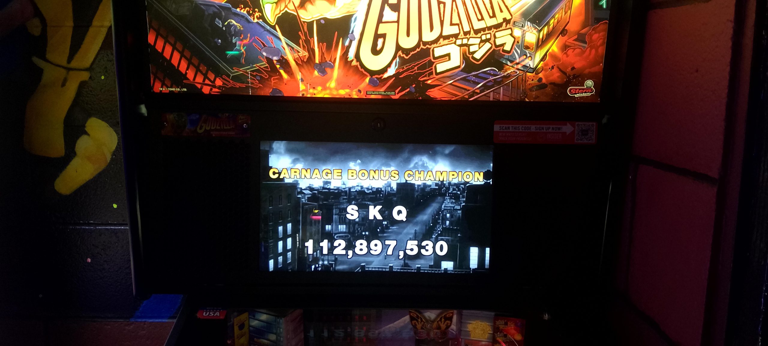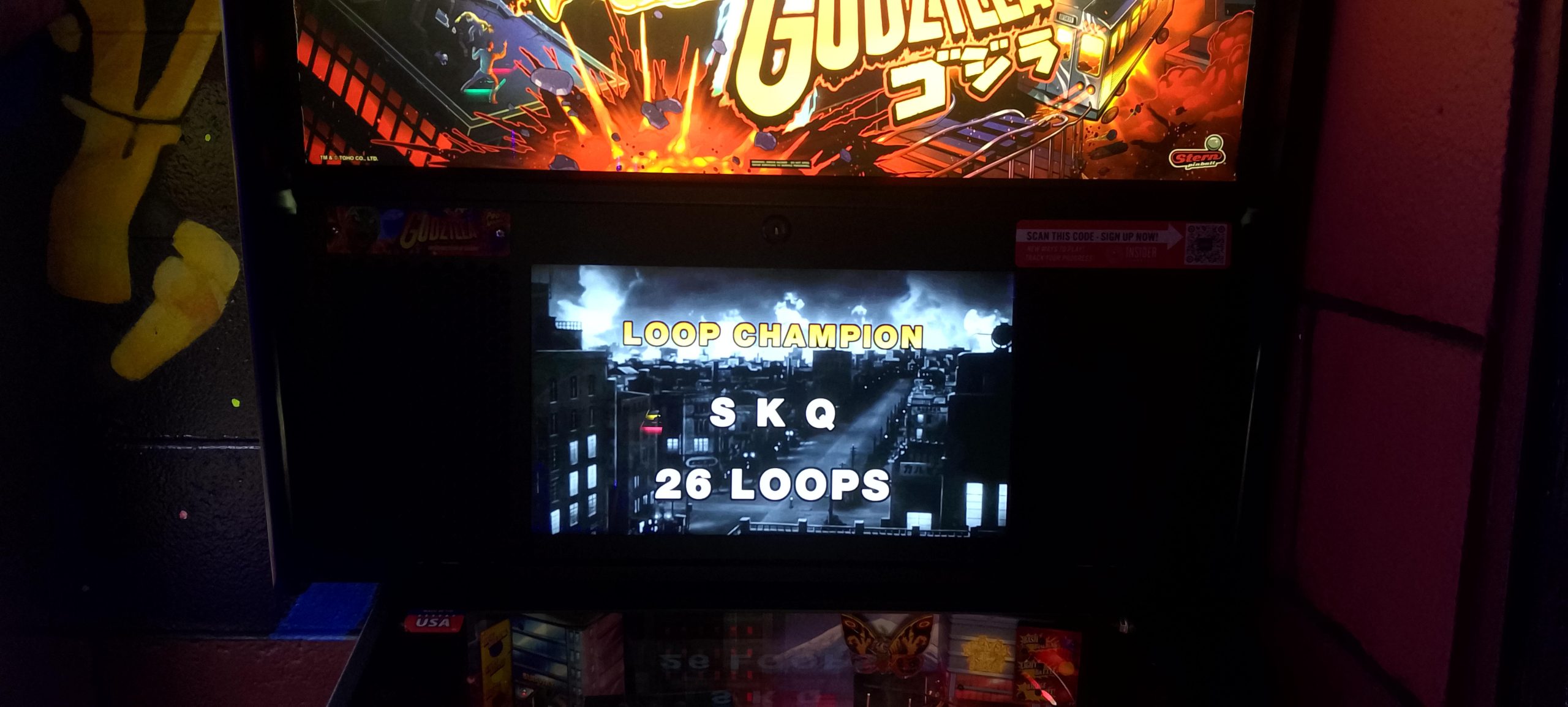 The machine lineup consisted of five games, all newer Sterns from the Spike 2 era (i.e. 2016 and later). Three games were on the main arcade floor: Godzilla (Pro), John Wick (Pro), and Teenage Mutant Ninja Turtles (Pro); two others were in the party room, wheeled in just for the tournament: Black Knight: Sword of Rage (Pro), and Iron Maiden (Pro). The format was five rounds matchplay (with 3-2-1-0 scoring) with a three-game matchplay finals (with 4-2-1-0 scoring a.k.a. “PAPA style”).