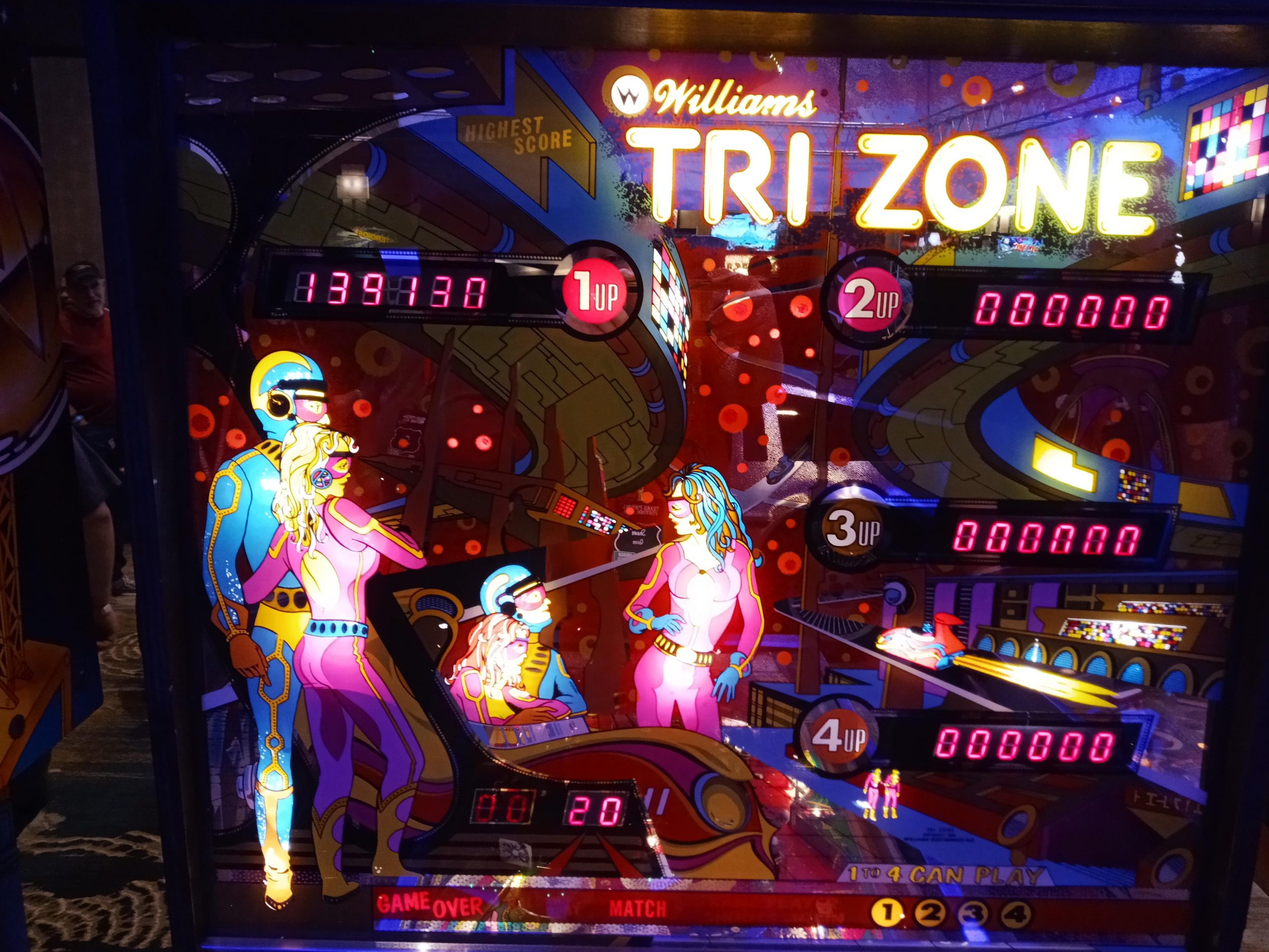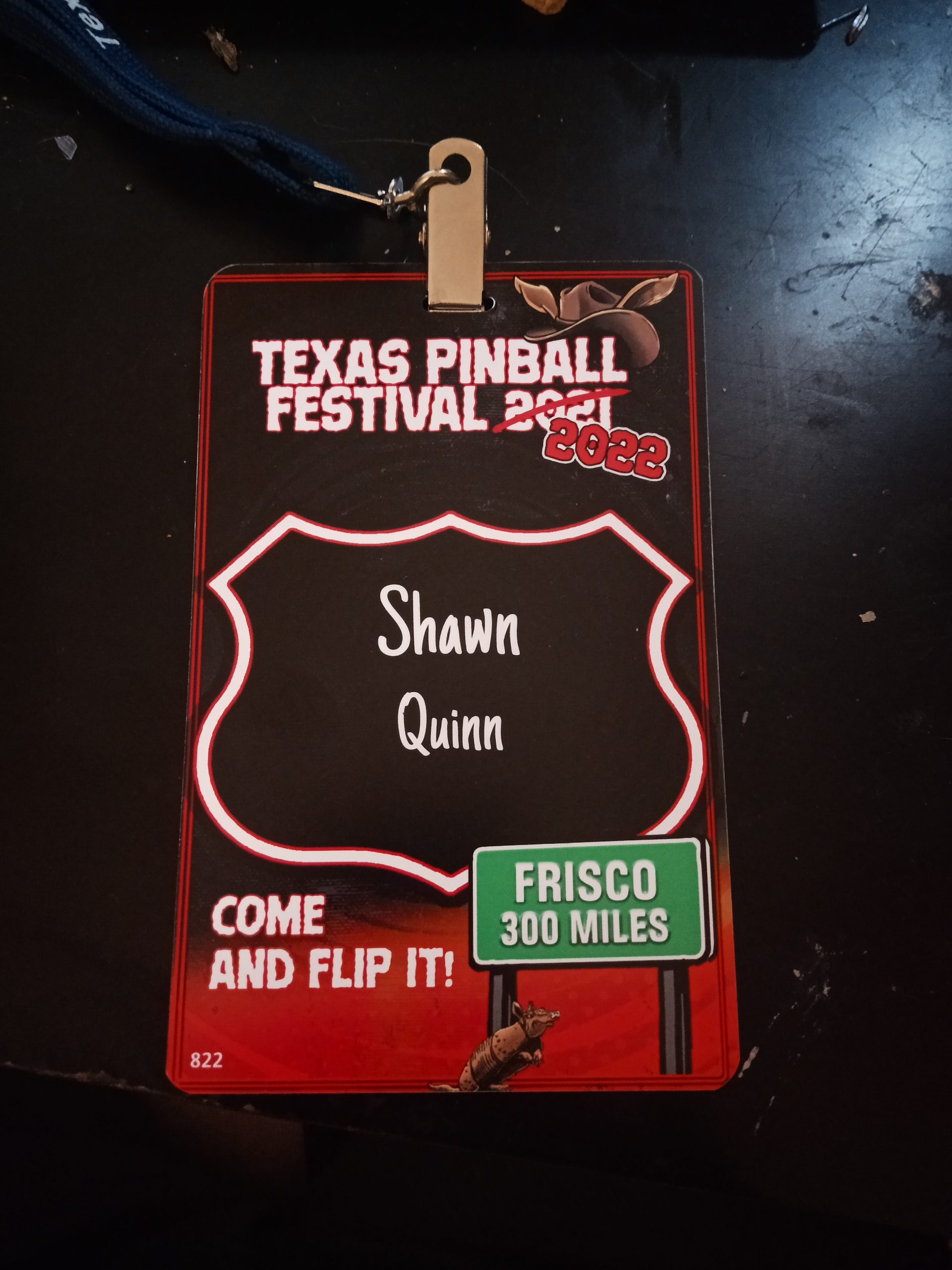 Since this was going to take some time to resolve, I decide to take care of other business. First order of business: emptying my bladder. Second order of business: (partially) refilling my vehicle’s fuel tank. (I took care of both at a QuikTrip not too far from where I was.) Then, it was time for me to head over to the Texas Pinball Festival site in Frisco. I needed to pick up my wristband, name tag, and program. By doing so at this point, I would not need to wait in line Friday morning. Such a wait could have potentially cut into practice time in the tournament room.